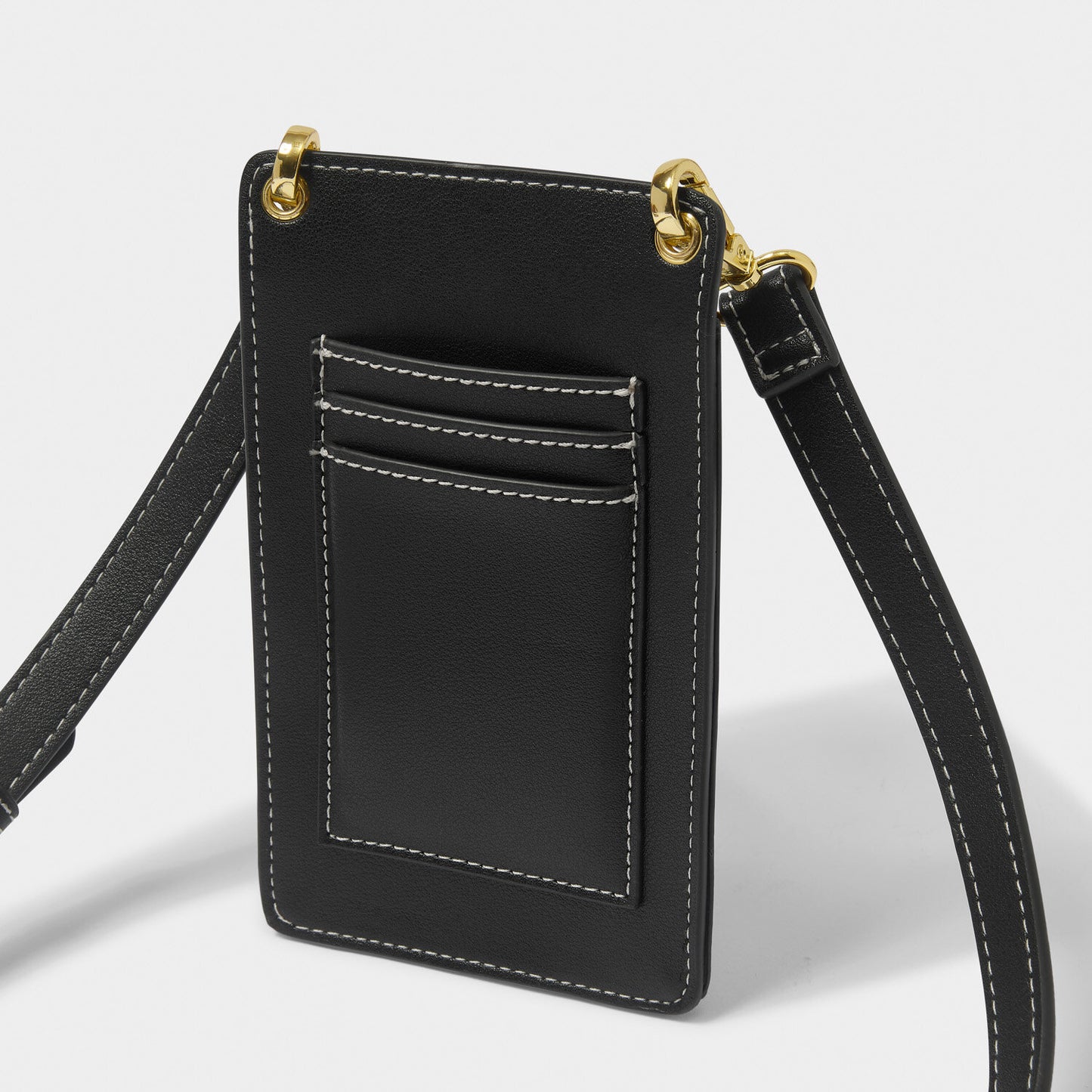 Made from soft vegan leather with stylish contrast stitching and gold-tone hardware, this chic bag features 3 card slots, a main phone compartment, and an adjustable crossbody strap for all-day comfort. The D-ring allows for personalisation with Clip-On Accessories, making it the perfect accessory for both day and night.