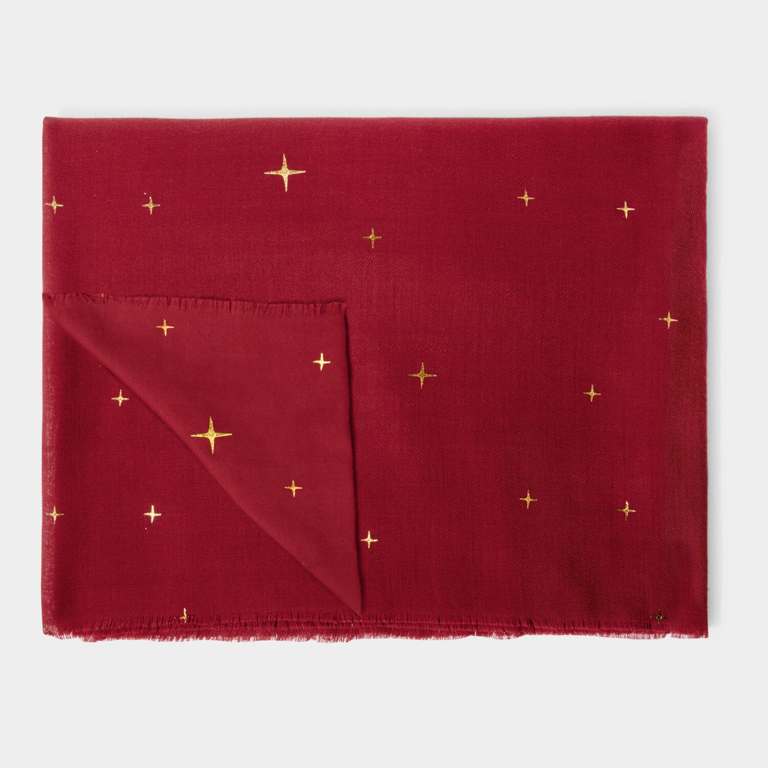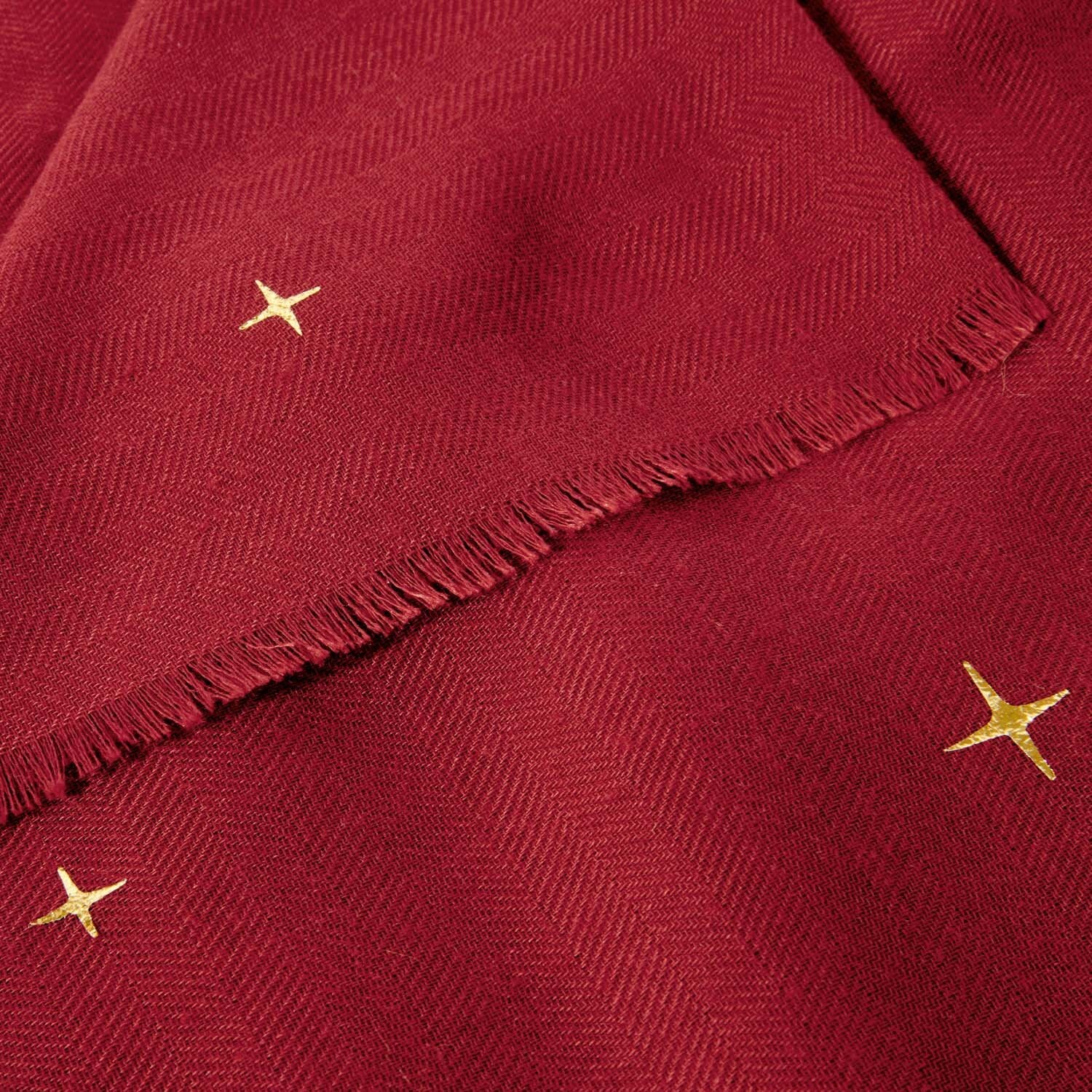 Made with a lightweight fabric, this versatile accessory is perfect for year-round wear. Its shimmering gold foil detailing adds a touch of elegance, while the frayed finish adds a stylish touch. Wear it as a shawl, tie it on your handbag, or drape it around your neck for a chic and fashionable look.