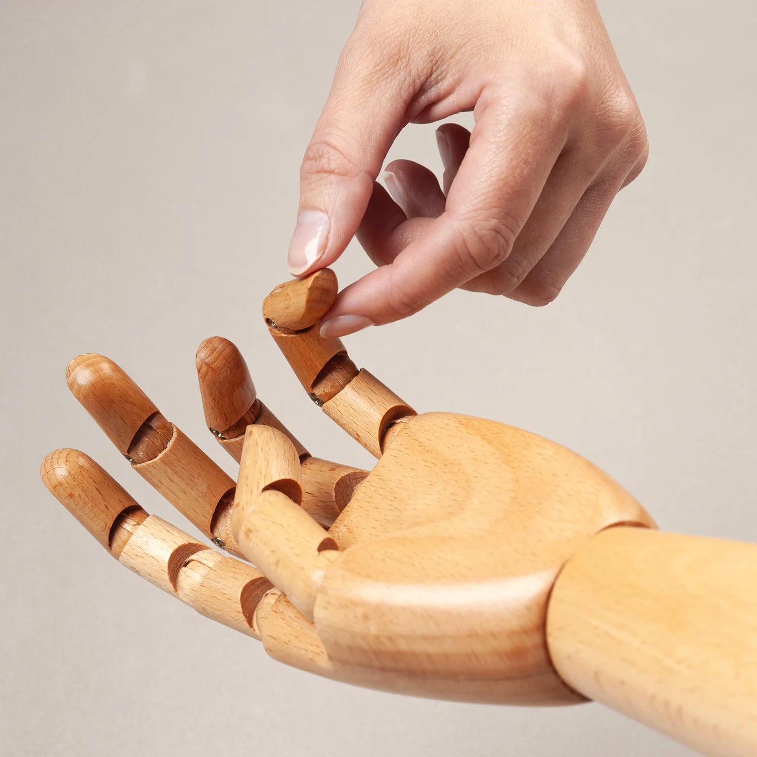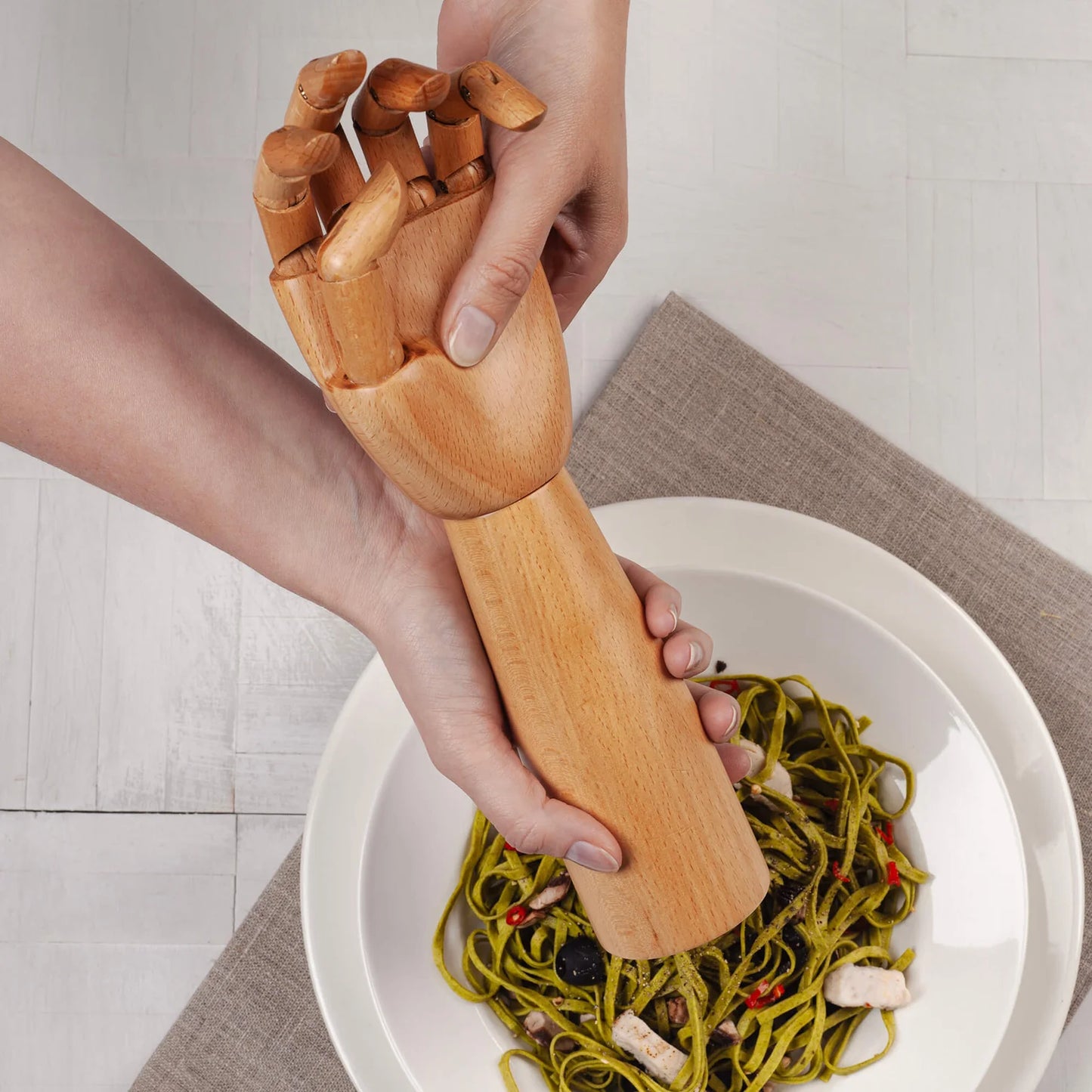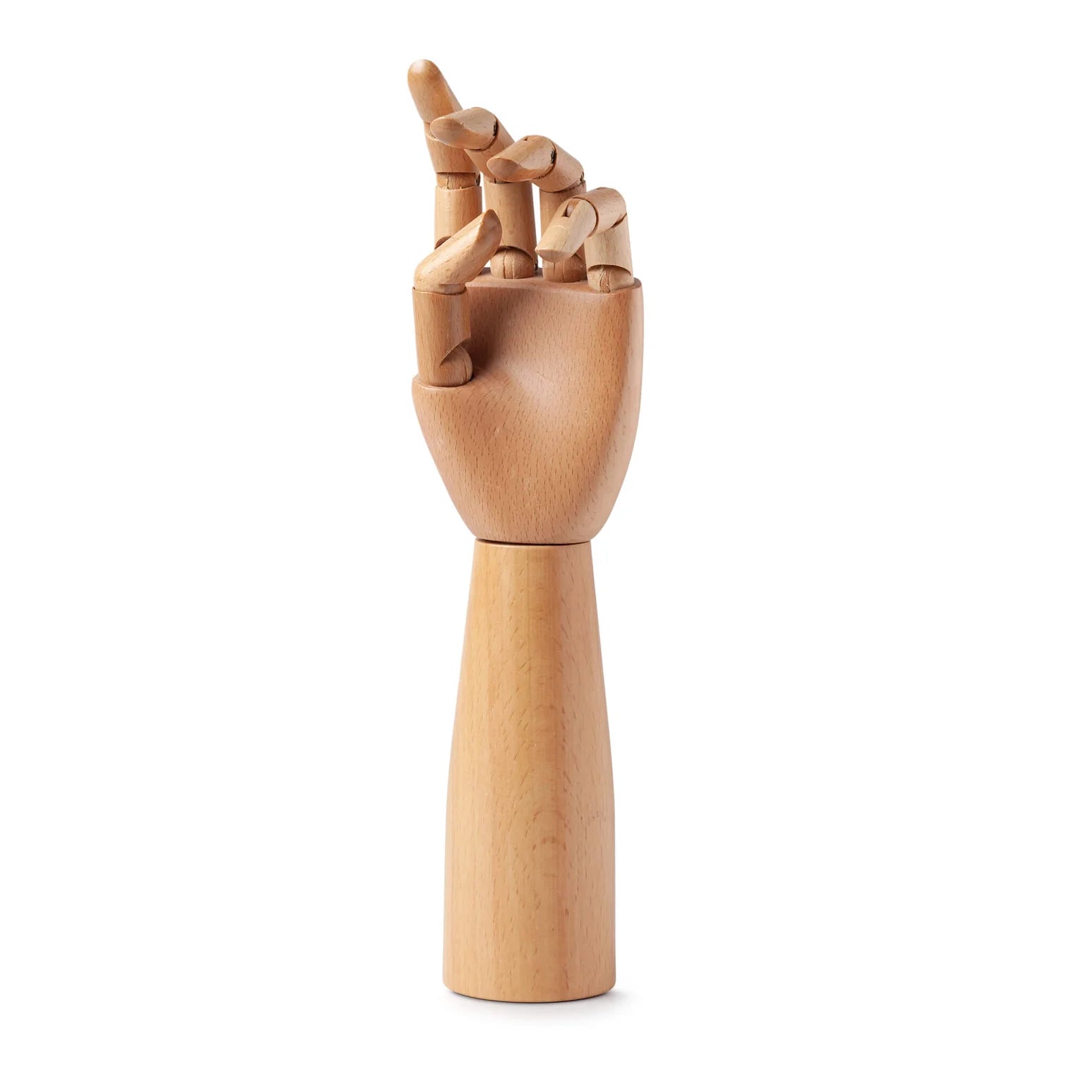 This impressive 33cm tall mill features fully articulated fingers crafted from solid beechwood for durability. With a high-quality ceramic grinder, it crushes spices without leaving a metallic taste. Available in left or right hand for easy salt and pepper grinding.