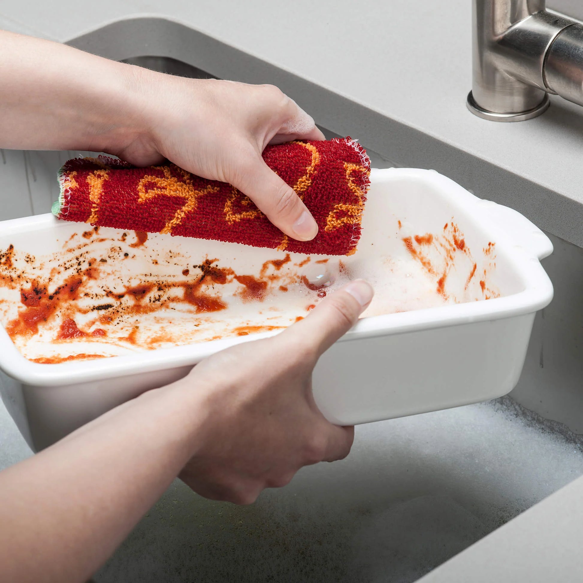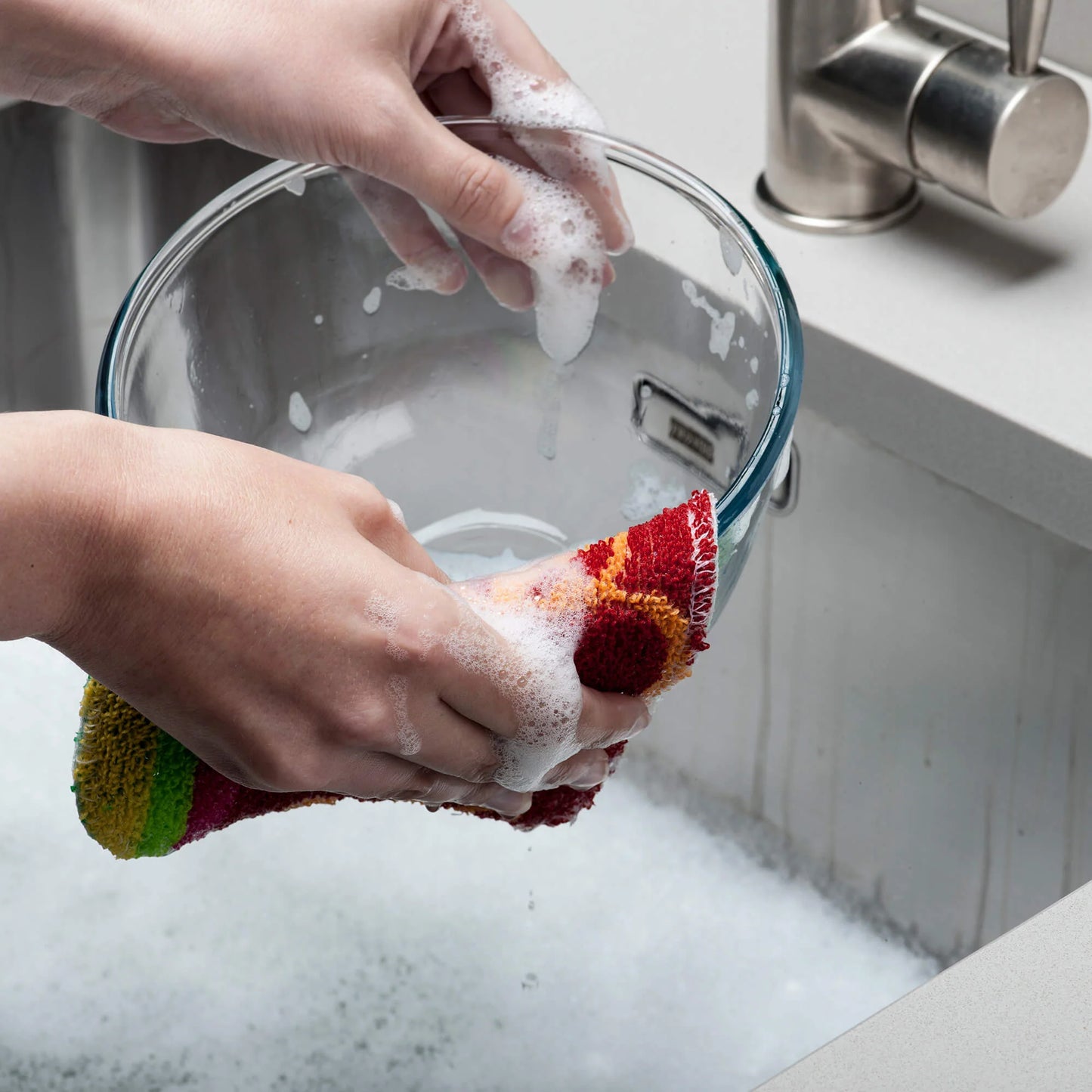 KILO Scrubby Plus both a non-scratch scourer, and soft cloth surface which can be used to safely clean a multitude of surfaces including pans, enamelware, ceramics, hobs, glass, tiles, even vegetables. Also great around the home and garden. Being able to be cleaned in the washing machine, the non-abrasive eco-friendly cloth can be used again and again.