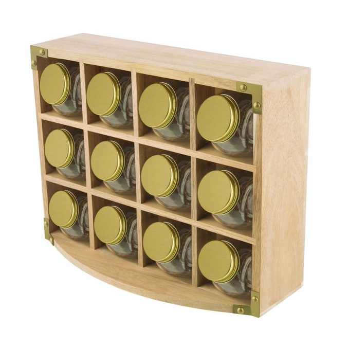 Kitchen Pantry Acacia Spice Rack 12 Jars