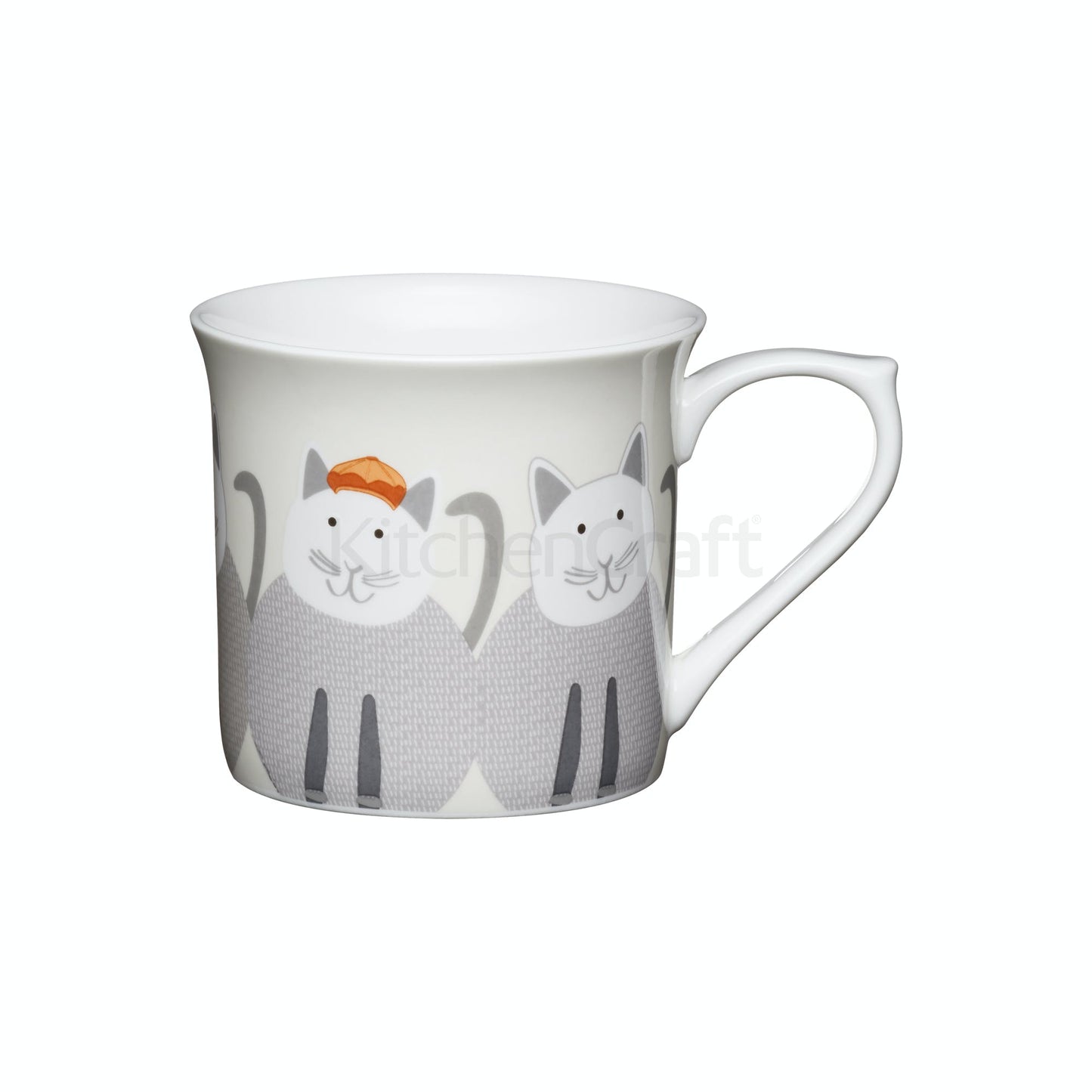 KitchenCraft Bone China Fluted Cats Mug 300ml