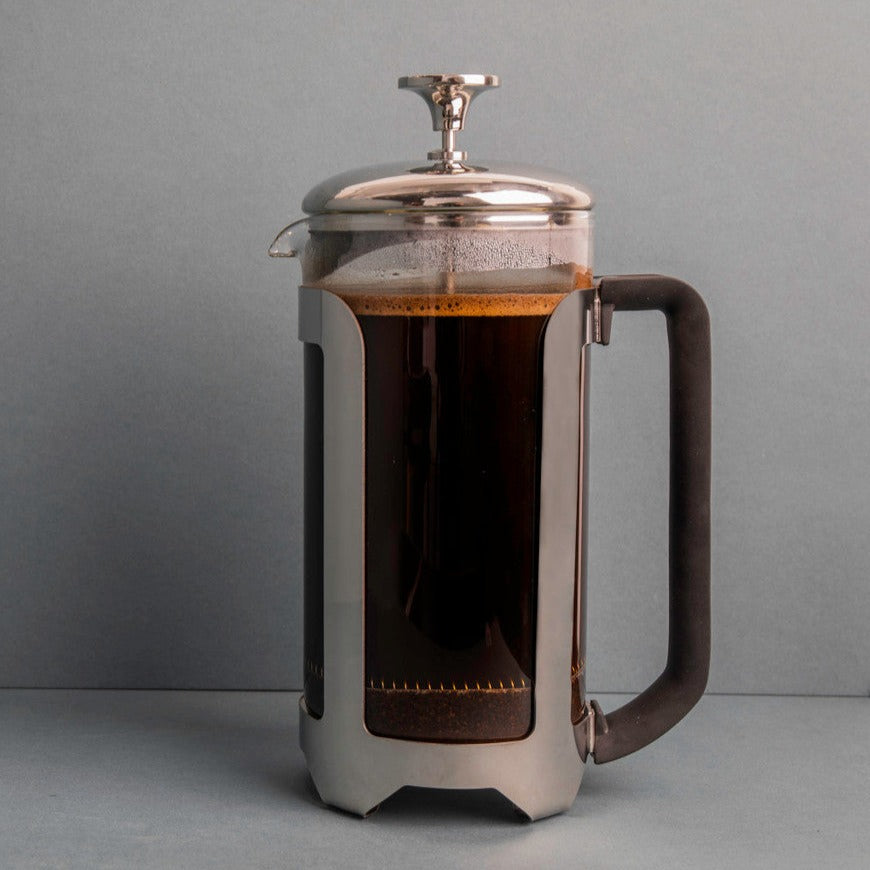 - Its filter traps the grains for smoothness, ensuring the coffee retains its flavour.
