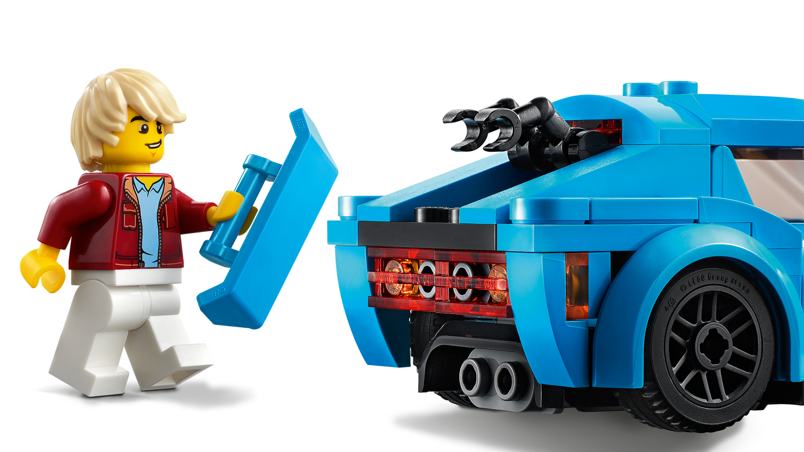 - Awesome design with eye-catching bodywork, an adjustable rear toy spoiler, sporty black rims with ground-gripping tires and a detailed tinted cockpit with seating for the included minifigure driver.