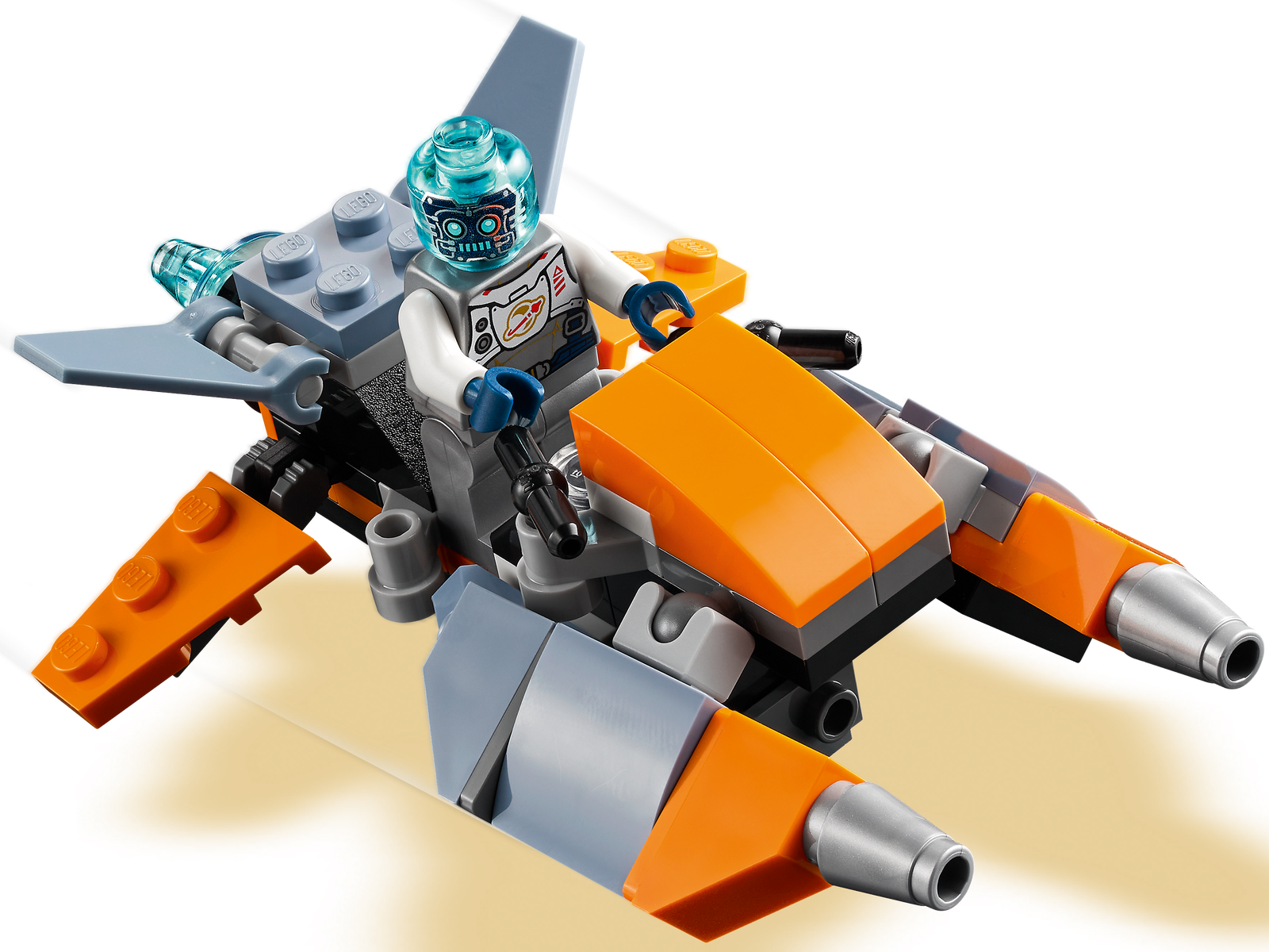 • This LEGO Creator 3in1 Cyber Drone (31111) building set inspires fantastic playtime fun for kids, with 3 models in 1 – a cyber drone, cyber mech and cyber scooter.