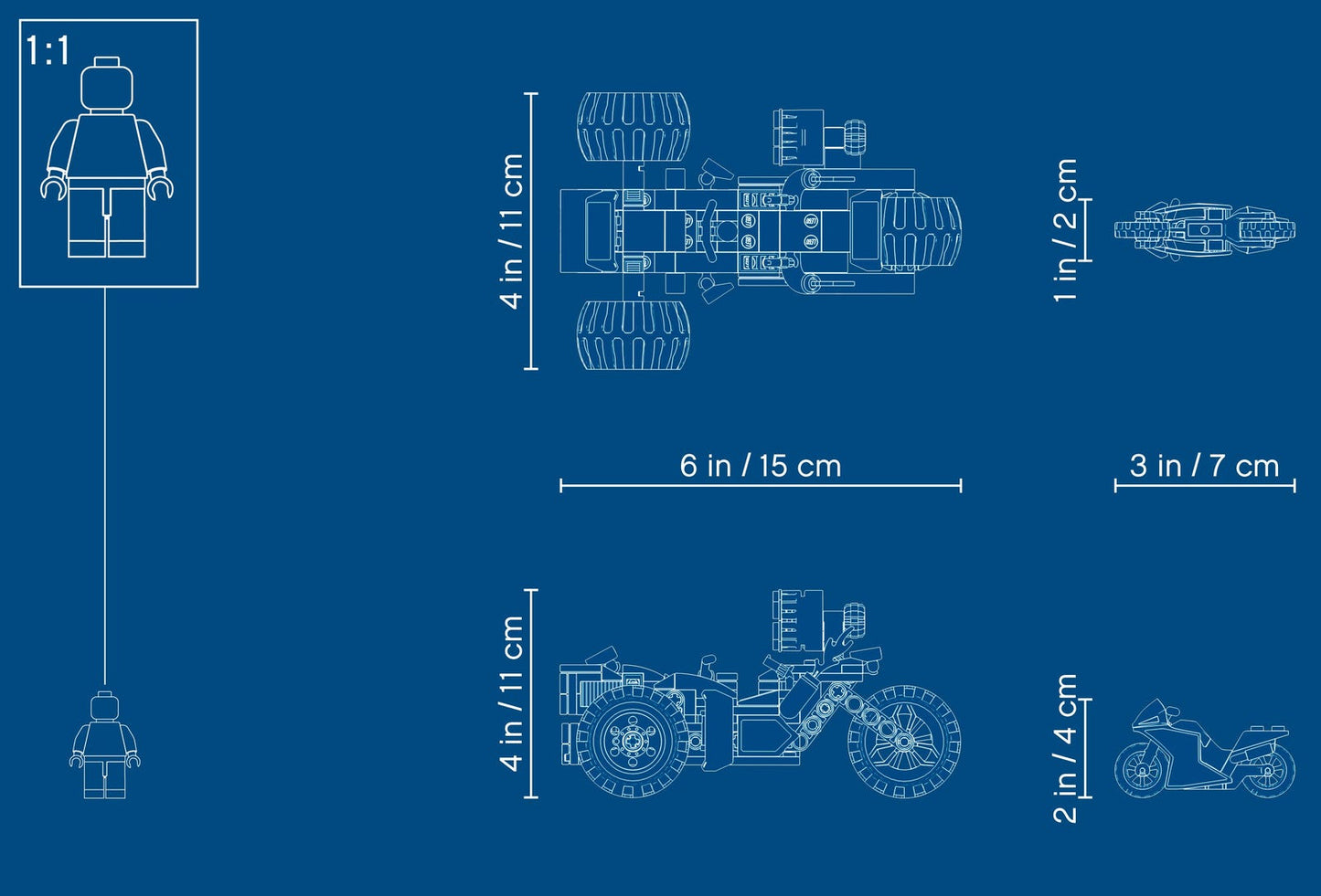 - Kids develop skills as they enjoy endless hands-on play driving the souped-up vehicles, acting out battles with minifigures, cool weapons and accessories, and removing the Batmobile’s engine to put in THE JOKER’s trike.