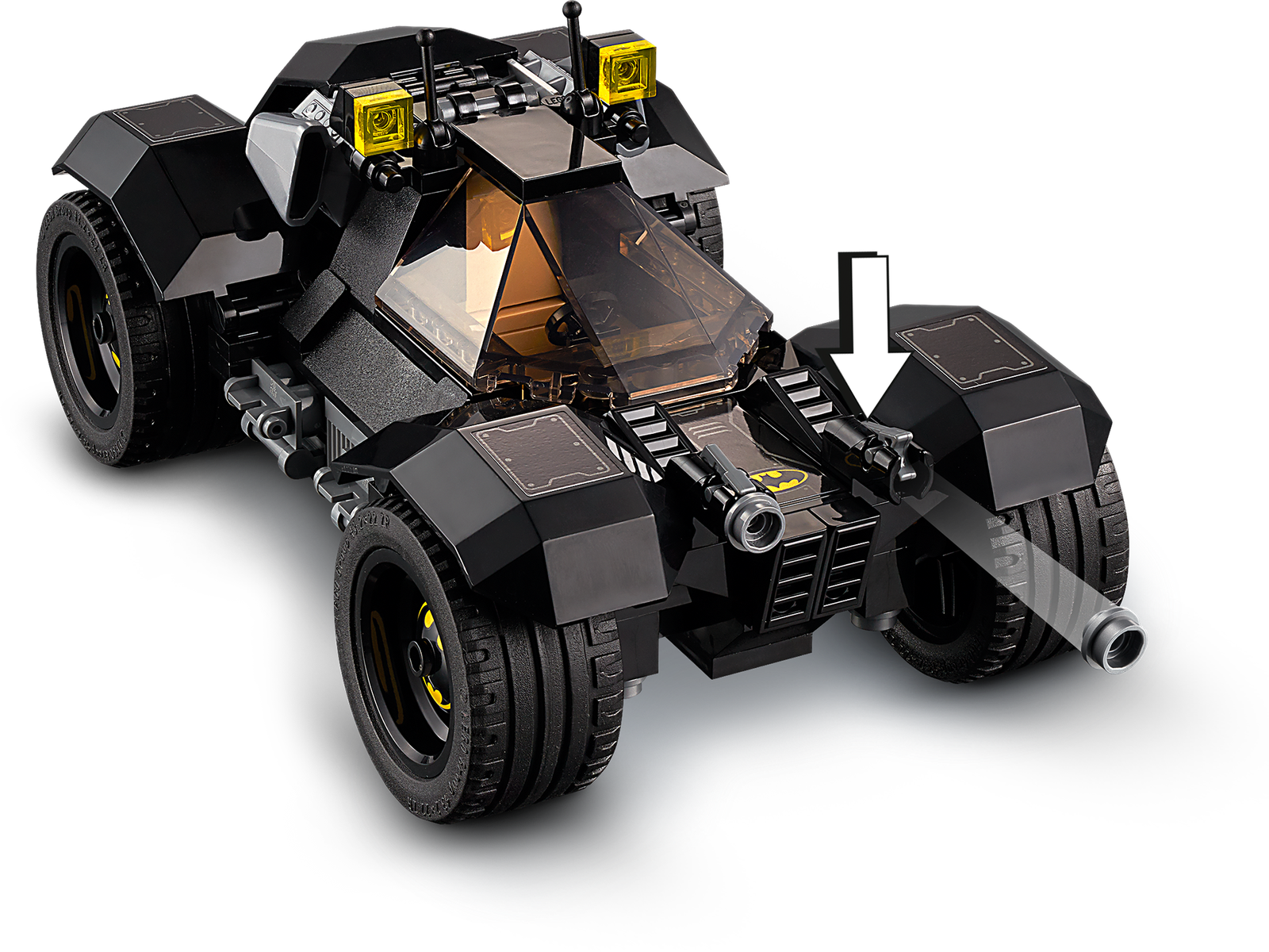 - Includes 4 minifigures and the Batmobile, with an opening cockpit for the Batman minifigure and a removable engine. THE JOKER's 3-wheeler has a grinning mouth on the front that opens and closes as the trike moves.