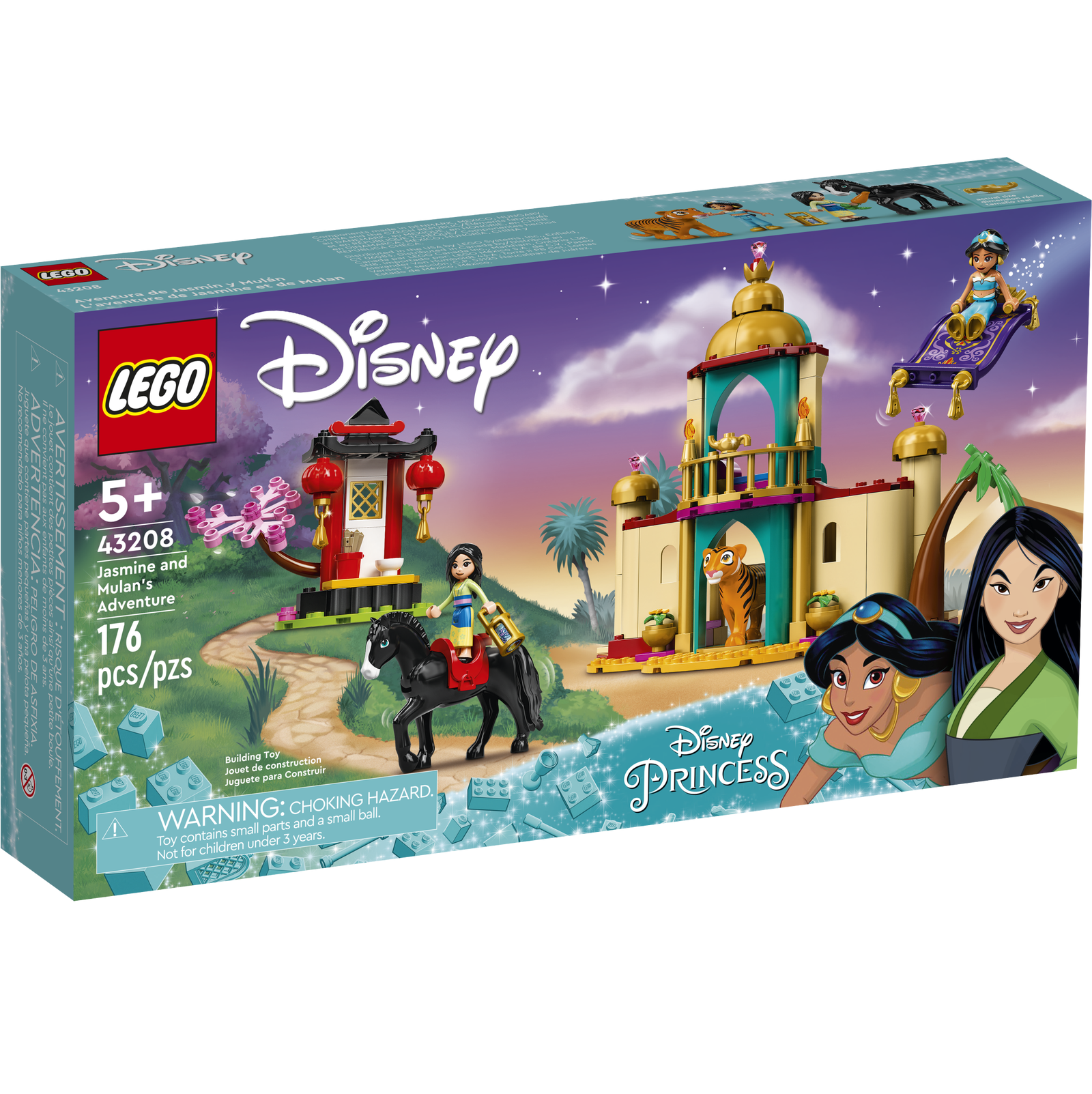 - Give any Disney fan a gift packed with features and accessories to inspire imaginative role-play in this fun LEGO Disney Jasmine and Mulan’s Adventure 43208 set.