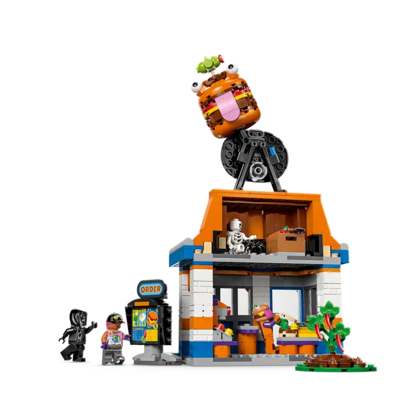 • Durrr Burger restaurant model – Feed imaginations with the LEGO Fortnite Durrr Burger Restaurant building set for kids aged 10 and up