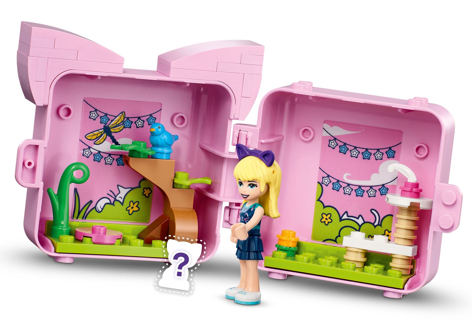 - LEGO Friends Cubes pack big fun into a little space. Inside this one is a LEGO Friends Stephanie mini-doll toy, a cat figure in a surprise colour, a bird and a buildable kitty gym.