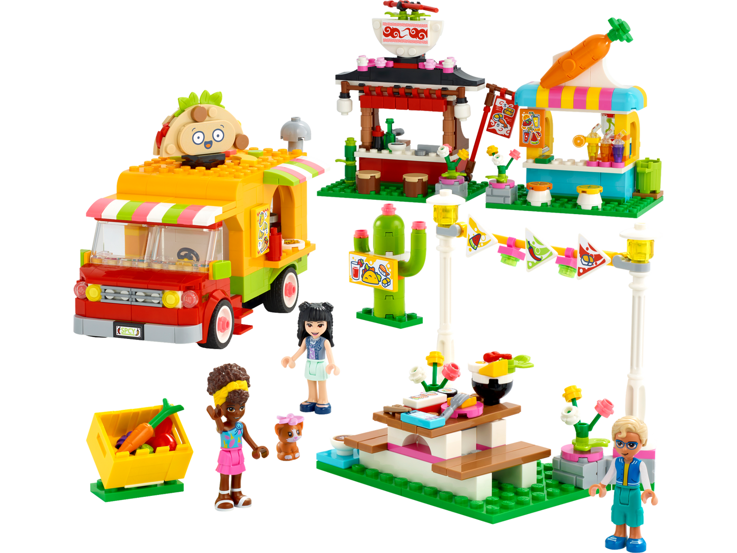 - A creative gift that celebrates world food – Young foodies will love to browse the international stalls of the LEGO Friends Street Food Market (41701) set while they hang out with their BFFs.