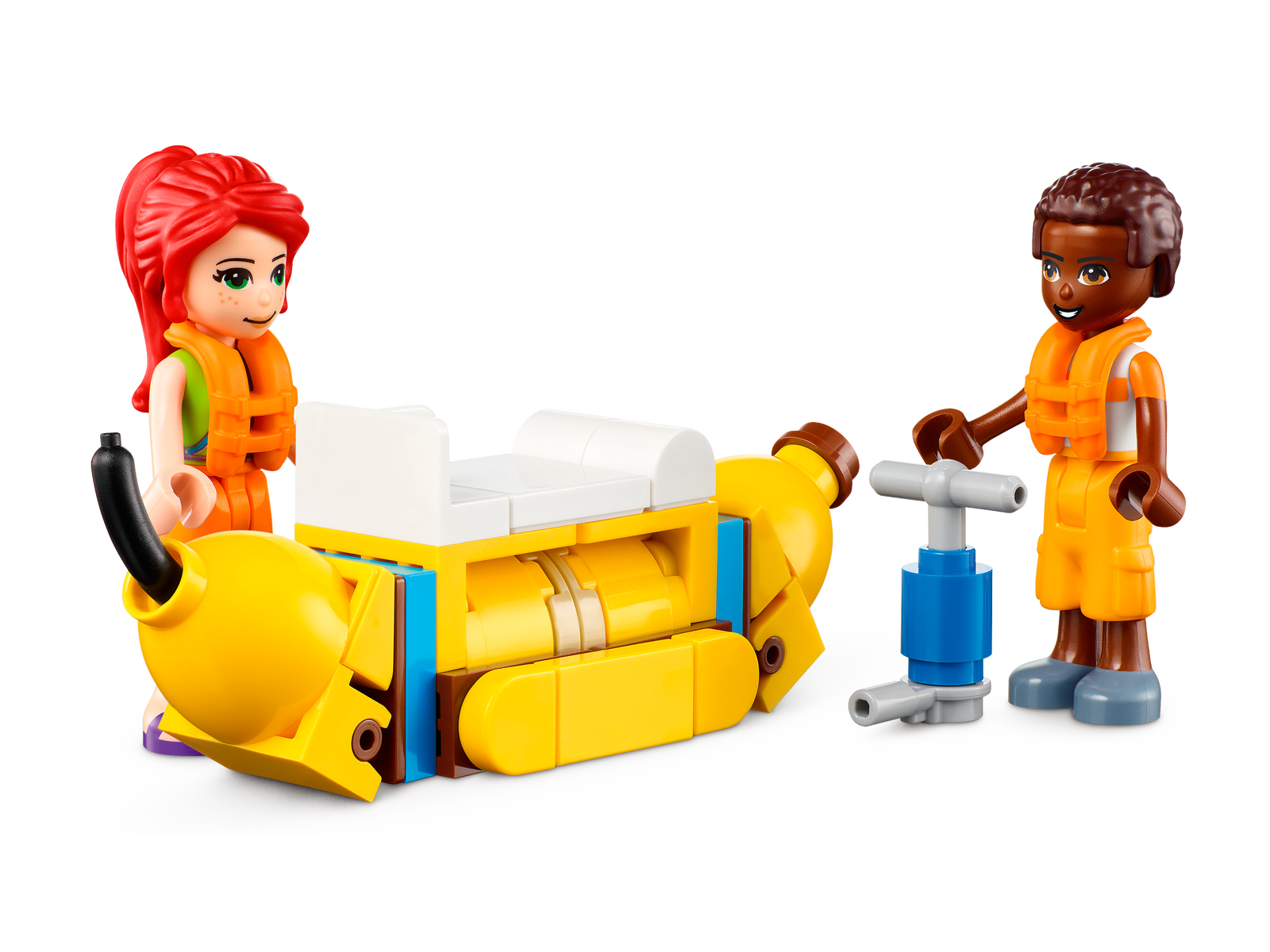 It’s packed full of features and toys for kids to play out summer days by the sea. The house has 2 bedrooms, 1 with a bathroom and toilet, plus a balcony and rooftop pool, a kitchen and a living room. Outside, there’s a table-tennis table, jetty and an inflatable banana boat for thrilling action on the waves. Kids can explore all these features with 4 LEGO Friends characters.