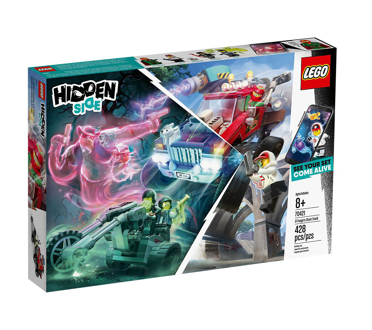 - Download the LEGO Hidden Side app and point your phone at El Fuego’s Stunt Truck to make it come alive. Move the phone around to discover an ever-changing environment hidden around the model.