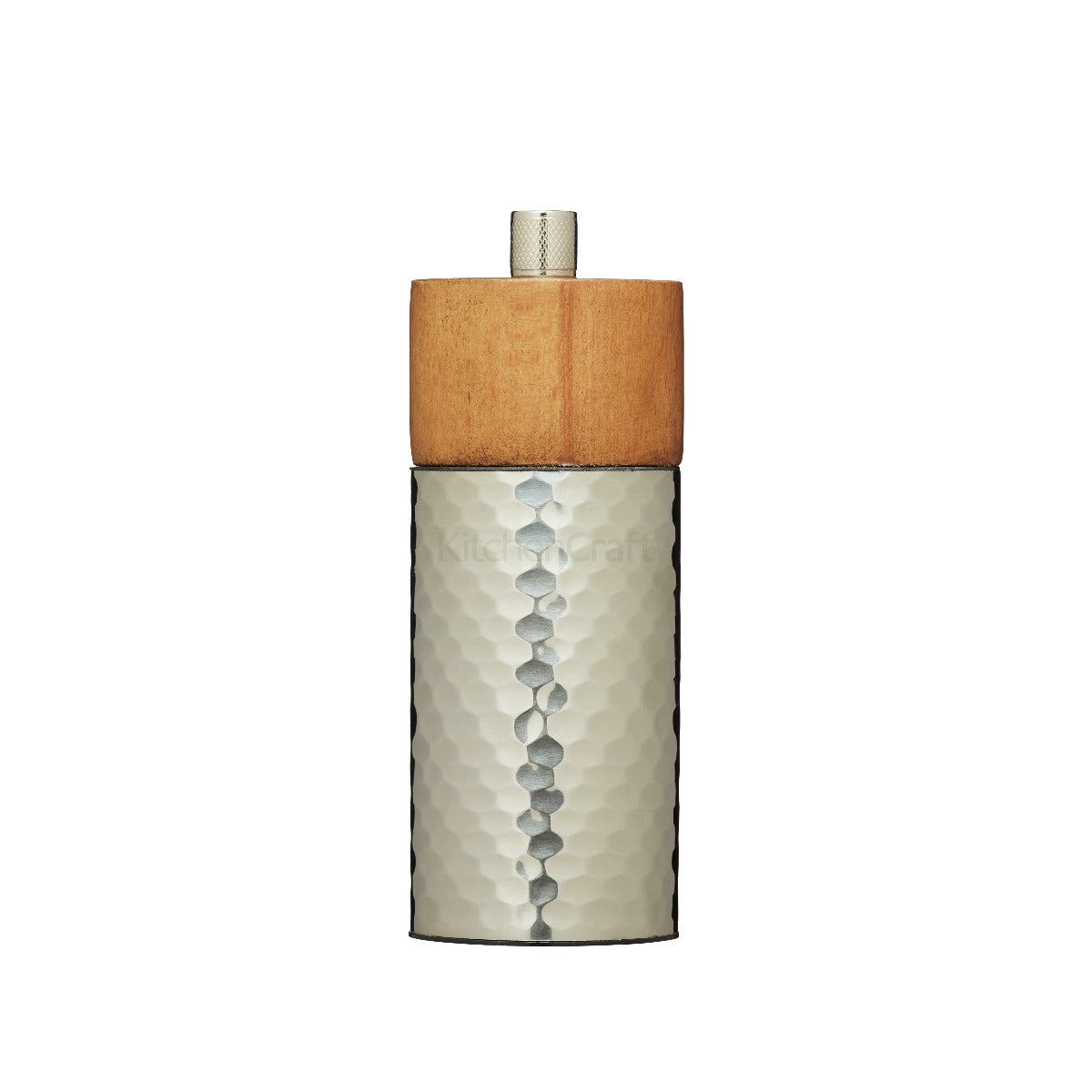 MasterClass Hammered Stainless Steel & Beechwood Salt Mill 15cm