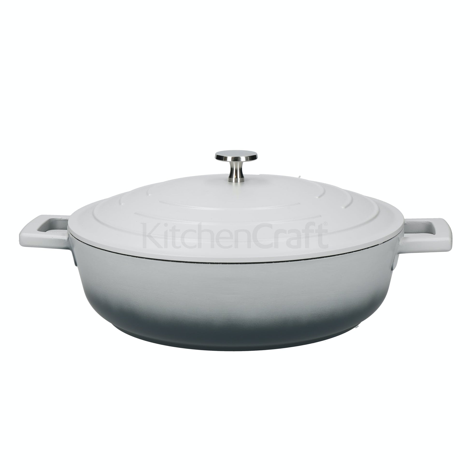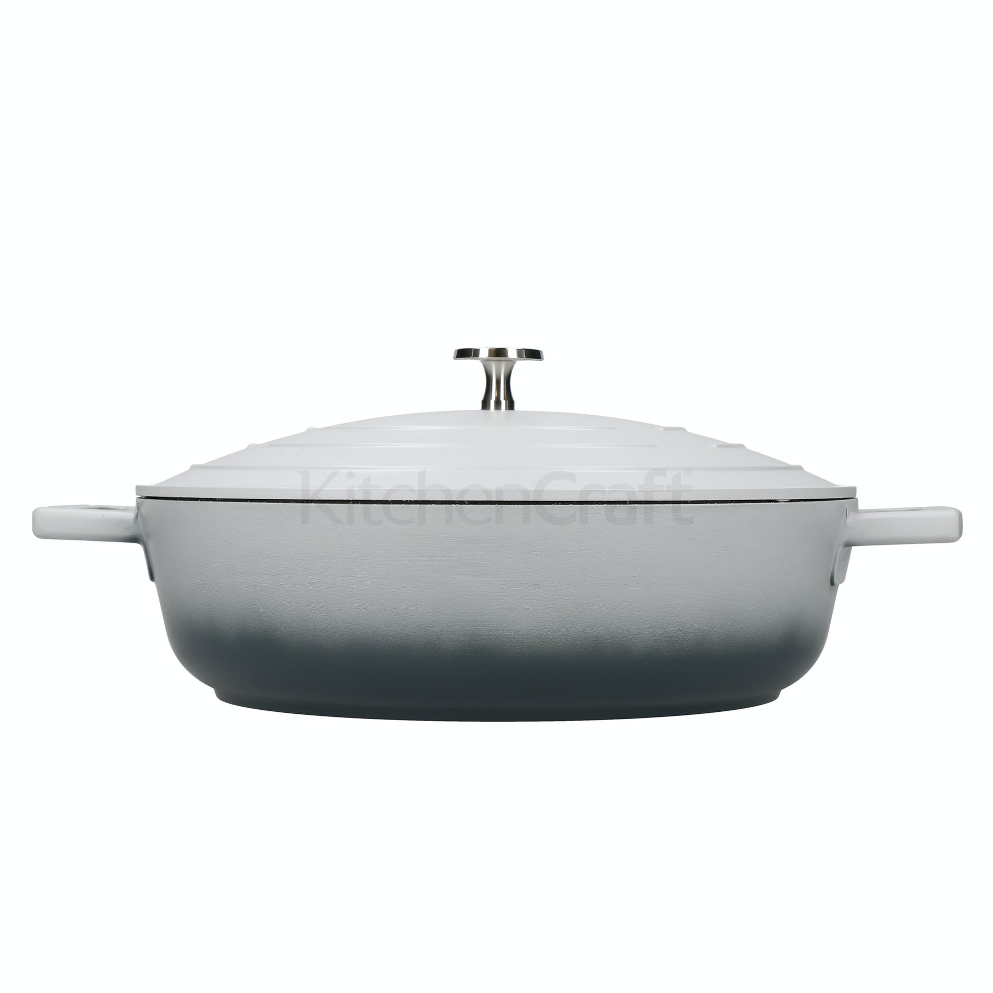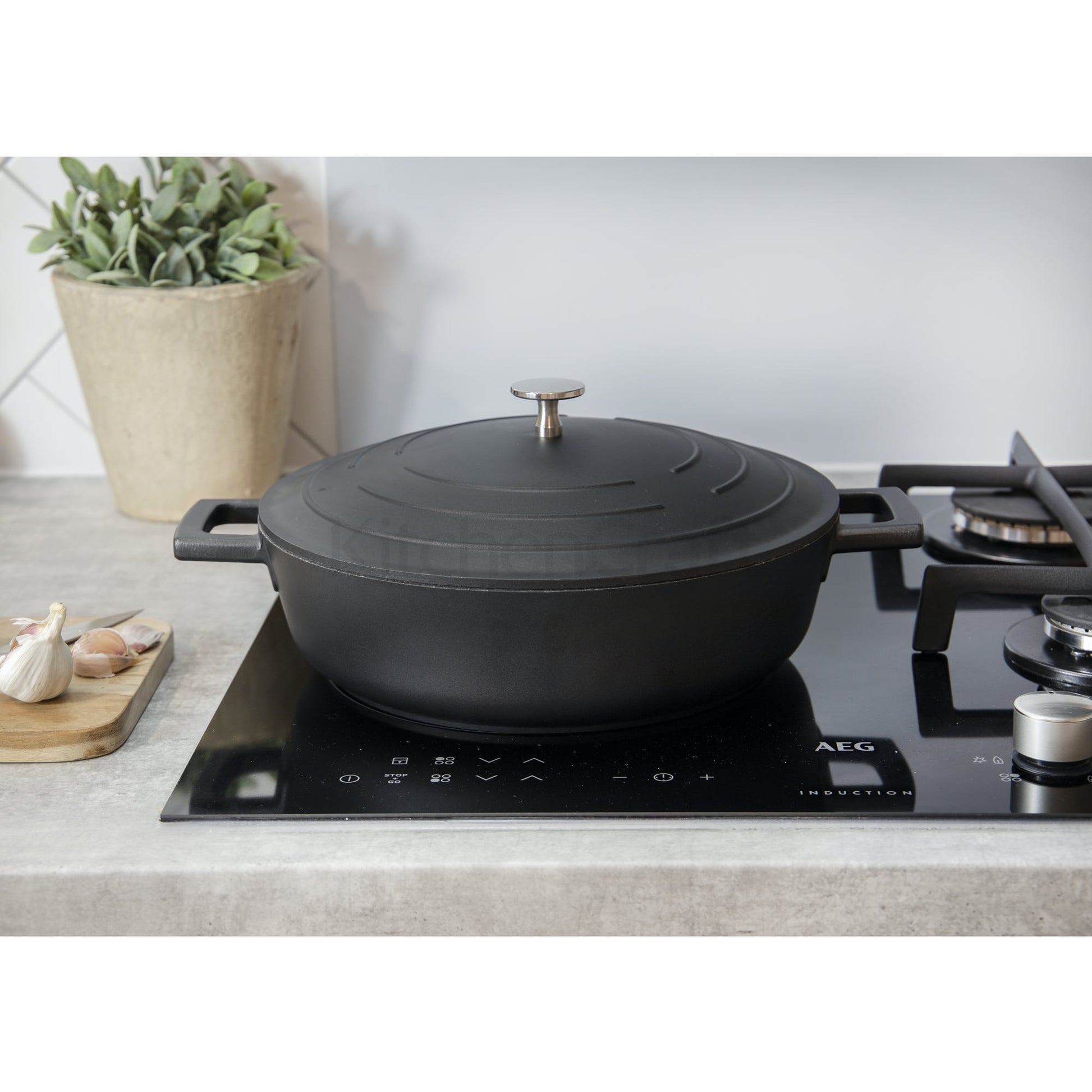 - REVOLUTIONARY CAST ALUMINIUM: this shallow casserole cooks like cast iron, but is lightweight and manoeuvrable