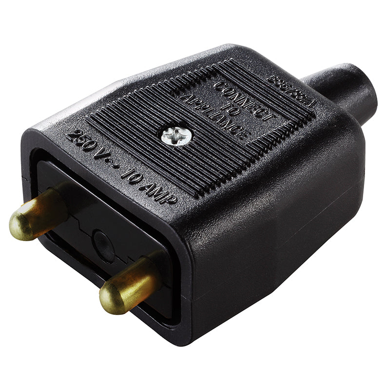 2-pole male, cable mount mains inline connector has an electric rating of 240V with 10A current