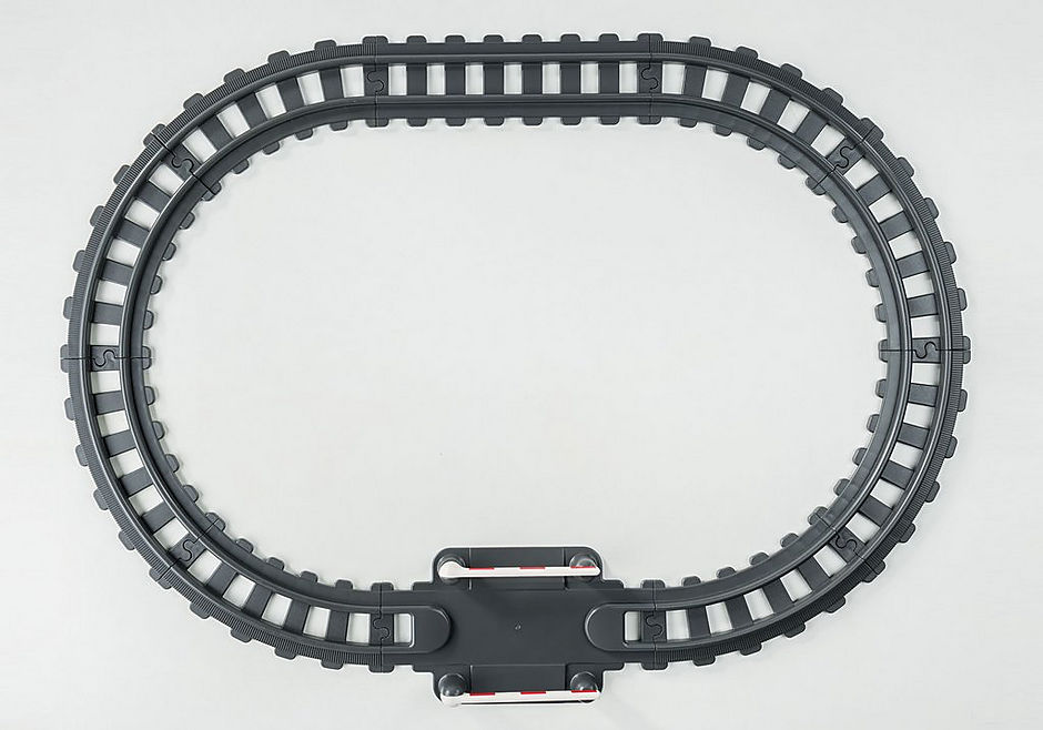 - Accessories: 1 locomotive, 1 passenger car, 1 goods wagon, 8 curves, 1 straight, 1 level crossing, 2 ramps, 1 tunnel, 1 railway signal, 1 bag, 1 parcel, 1 postbag, 1 nest, 1 green area with flowers.