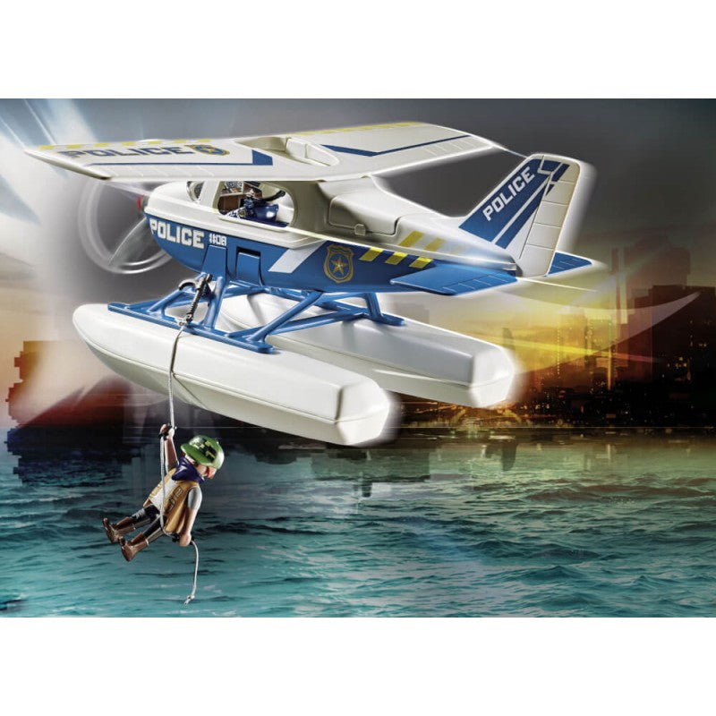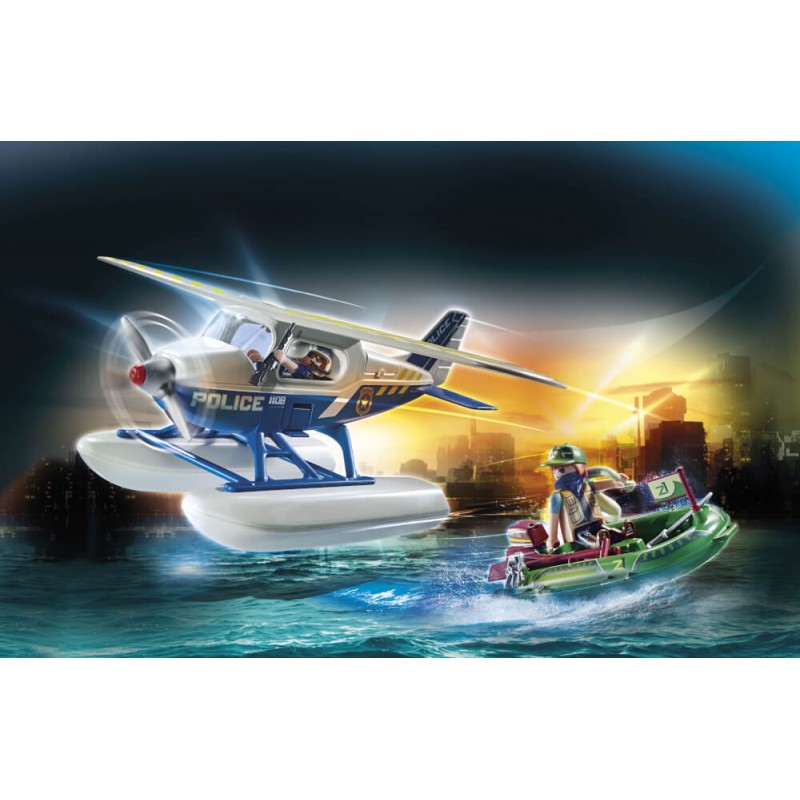 Includes 1 police seaplane, 1 raft boat, 2 figures, and many accessories.