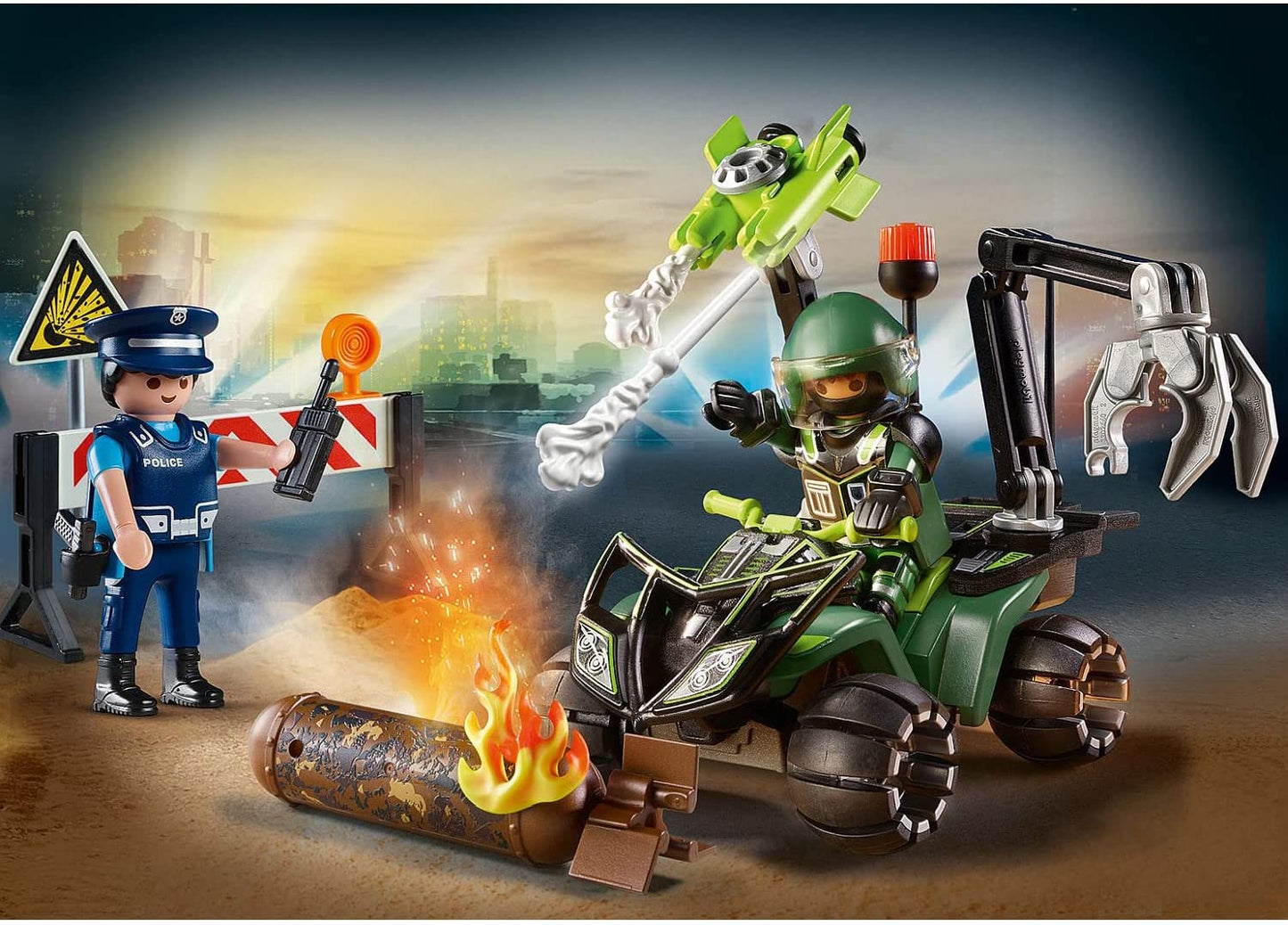 • Includes: A police quad with claw, 2 figures, blaster with projectile and many accessories.