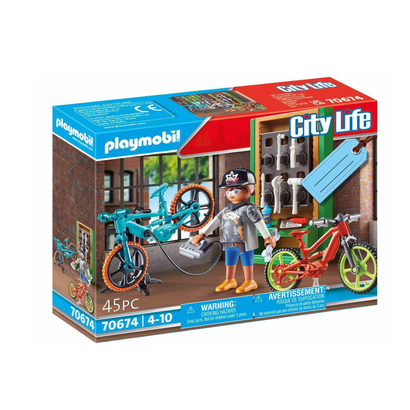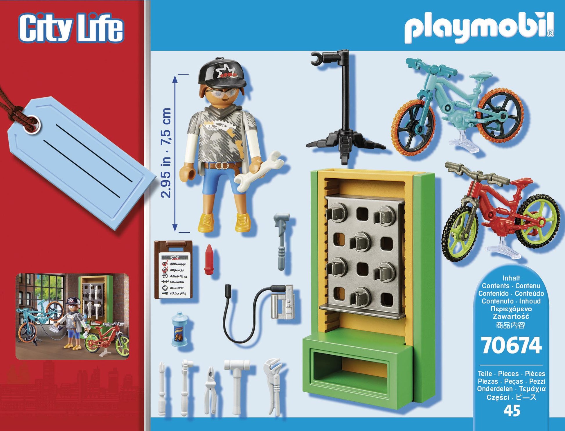 - Includes: 2 Playmobil bikes, 1 mechanic figure, a workshop bench and many related accessories.