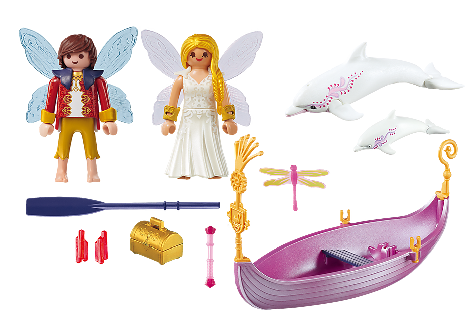 Playmobil Fairies Romantic Fairy Boat has a boat & dolphins float.