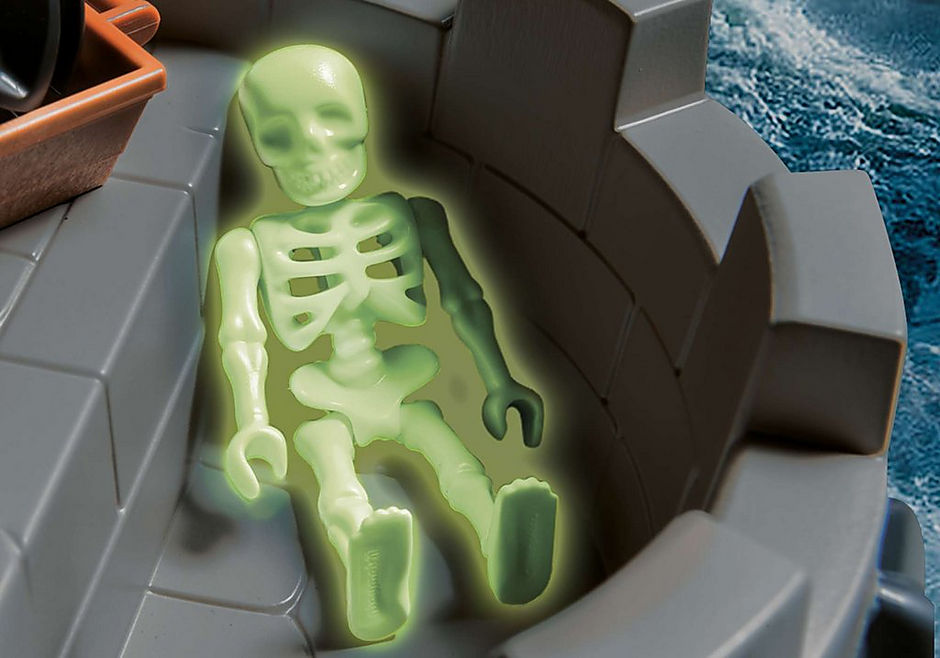 - Accessories: 1 palm tree, 1 bombard, 2 bombard balls, 1 trough, 3 hats, 2 pistols, 1 sabre, 1 rifle, 1 chest, 2 oars, 1 anchor, 1 barrel, 1 rifle with bayonet, 1 crown, 1 chain, 2 jewels, 10 gold coins.