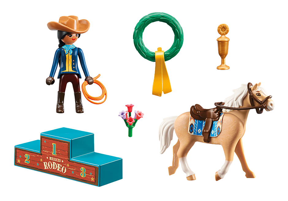 - Accessories: 1 winner's podium, 1 winner's wreath with bow, 1 lasso, 1 bouquet of flowers, 1 trophy, 1 western saddle, 1 saddle blanket, 1 halter, 1 rein, 1 hat.