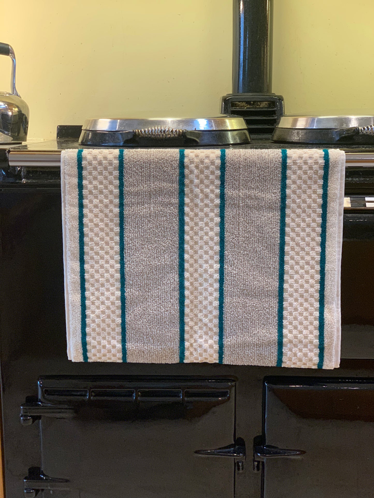 Stay clean in the kitchen with the Samuel Lamont Green Stripe Cooker Towel. Made with durable cotton for extra absorbency and strength, this classic kitchen essential takes on the toughest staining messes with ease. Keep things neat and tidy, without getting your hands wet.