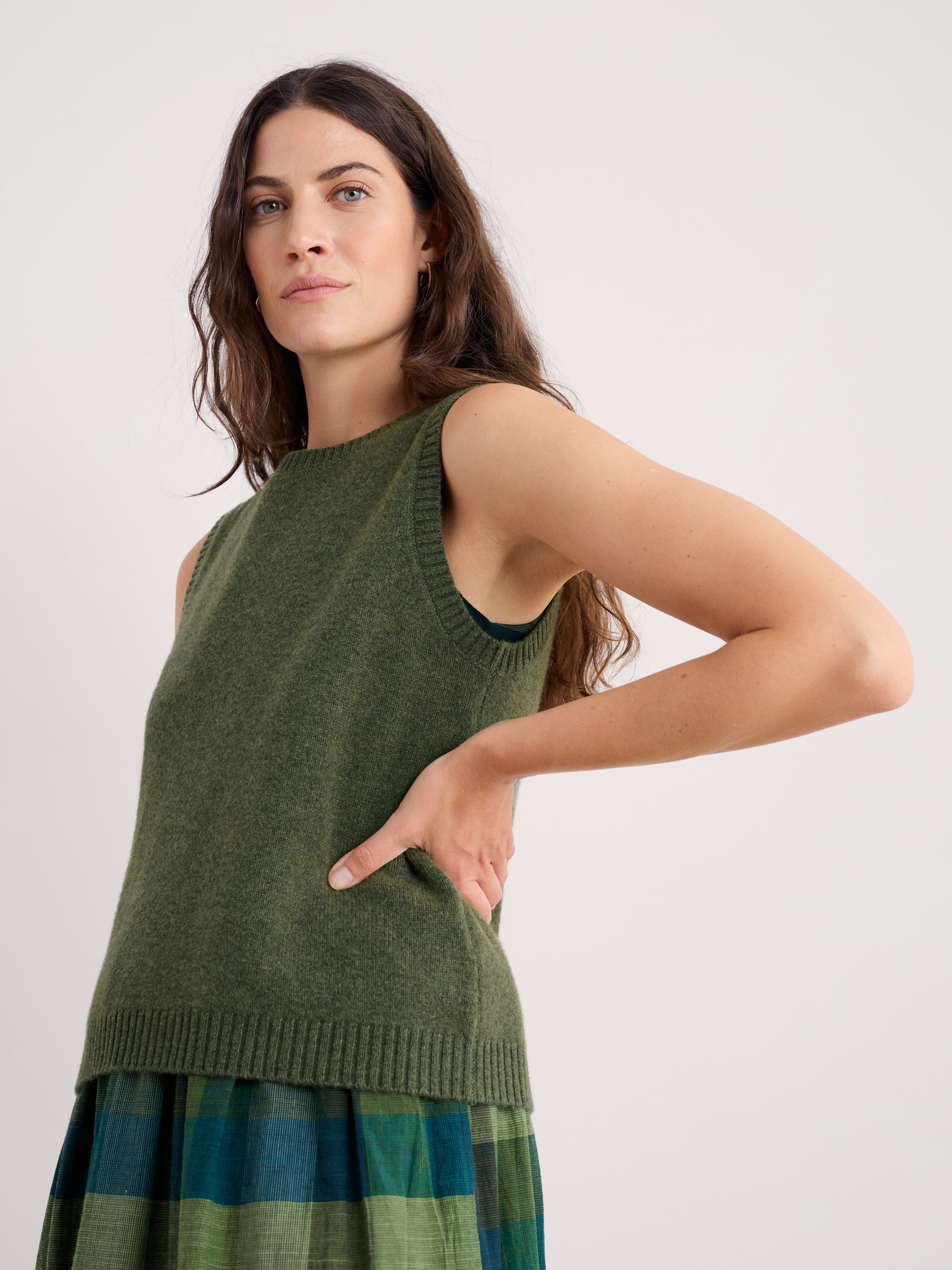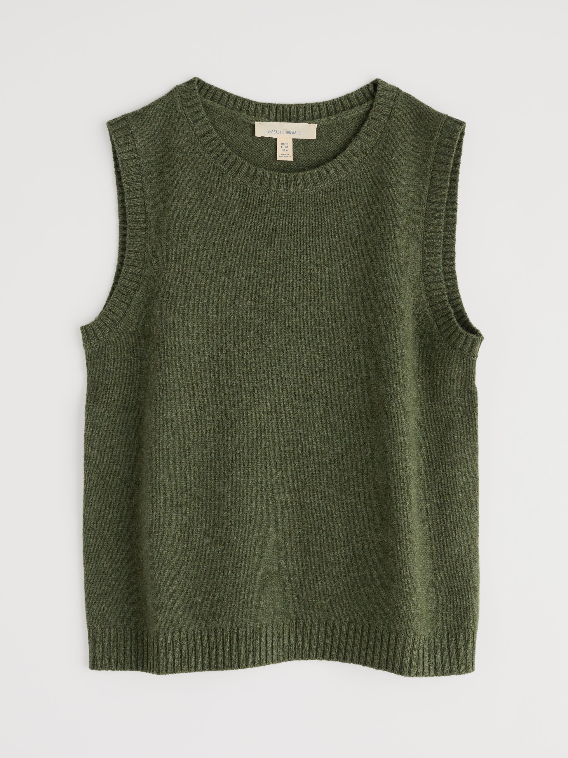 Crafted with lightweight, high-quality merino-rich yarn, this vest offers warmth and comfort throughout the day. Its neat shape and ribbed edges give it an instantly modern look that can easily be layered over dresses, jeans, and T-shirts. Enjoy effortless everyday style with this wardrobe essential.