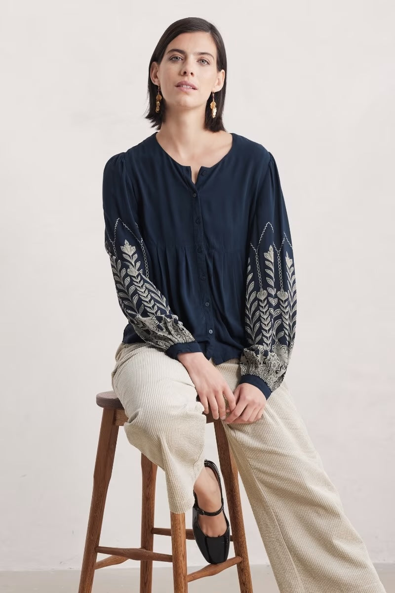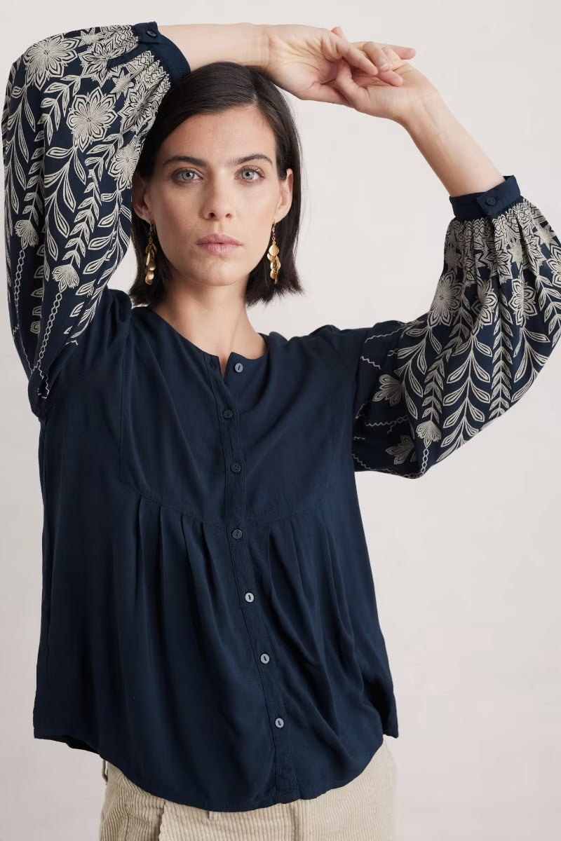 The Seasalt High Woods Blouson Sleeve Shirt is a sustainable and stylish addition to your wardrobe.