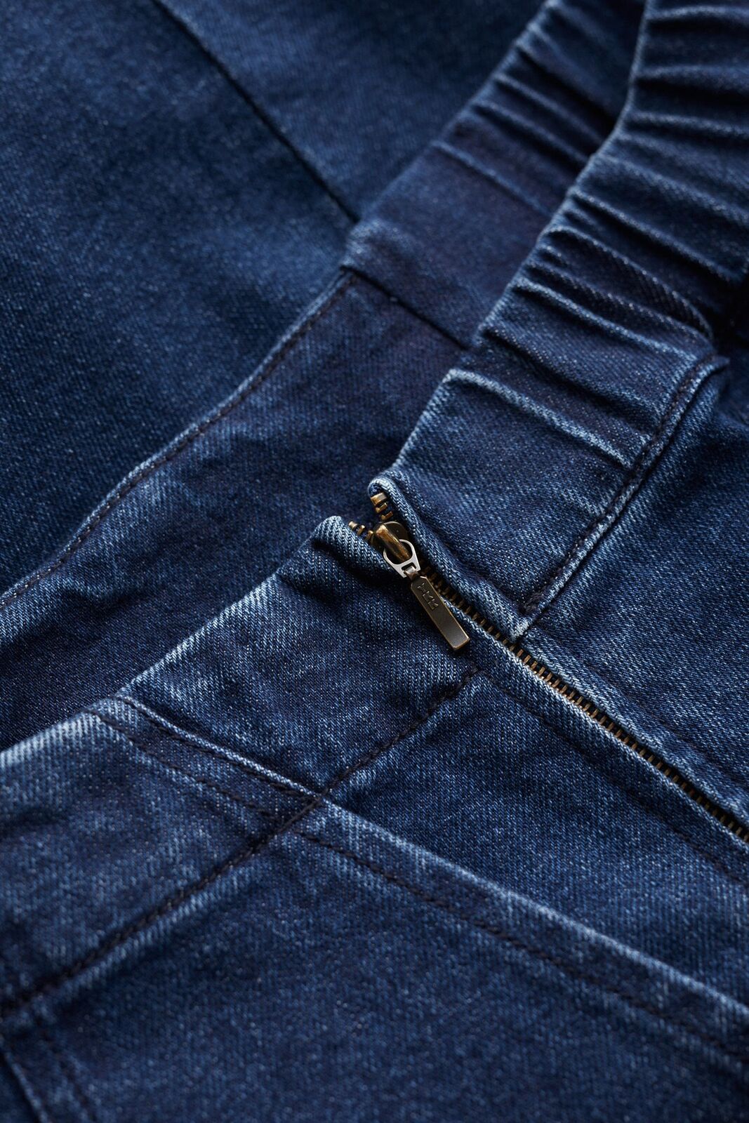 - Invisible side zip and elasticated back waist