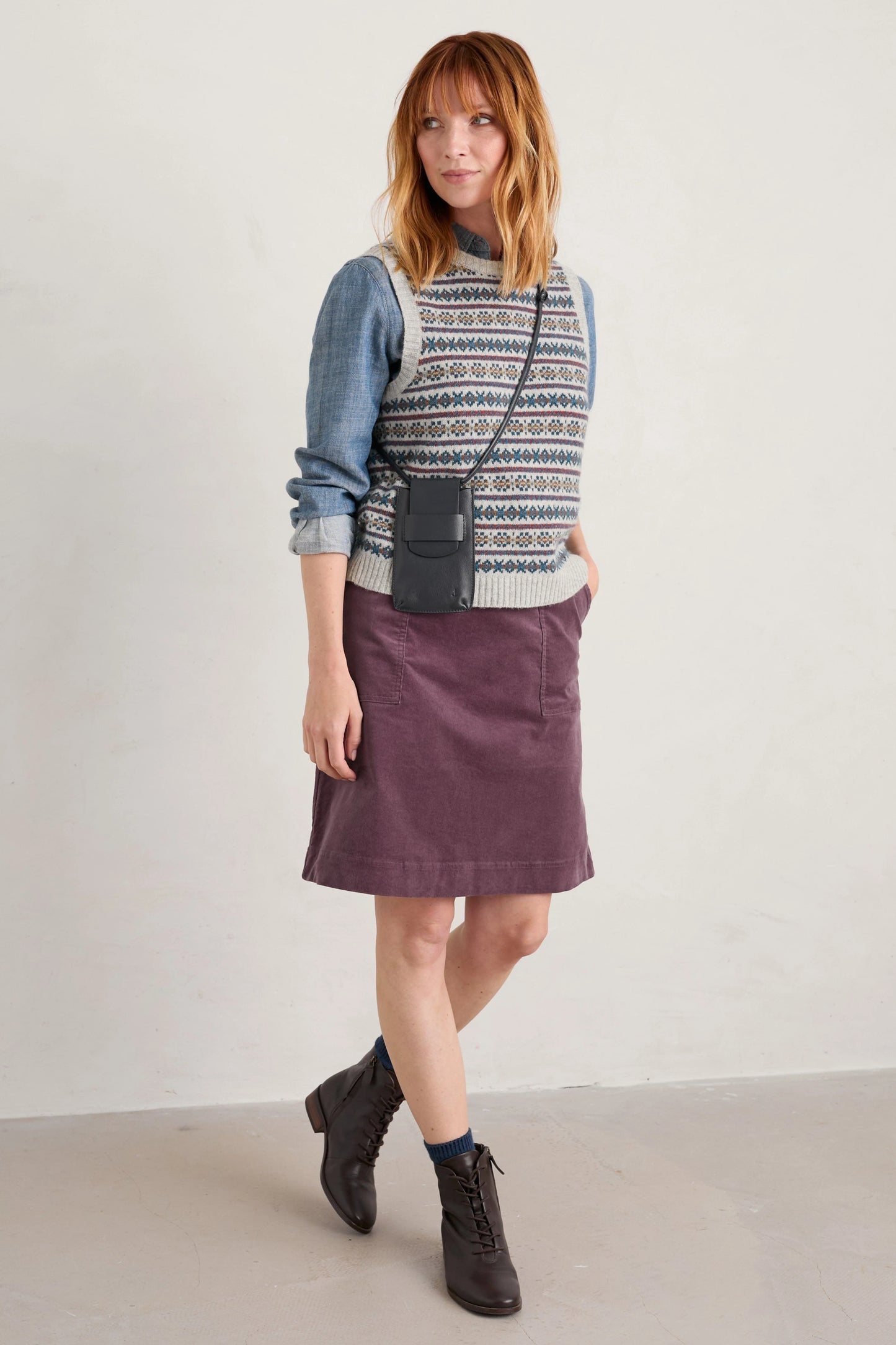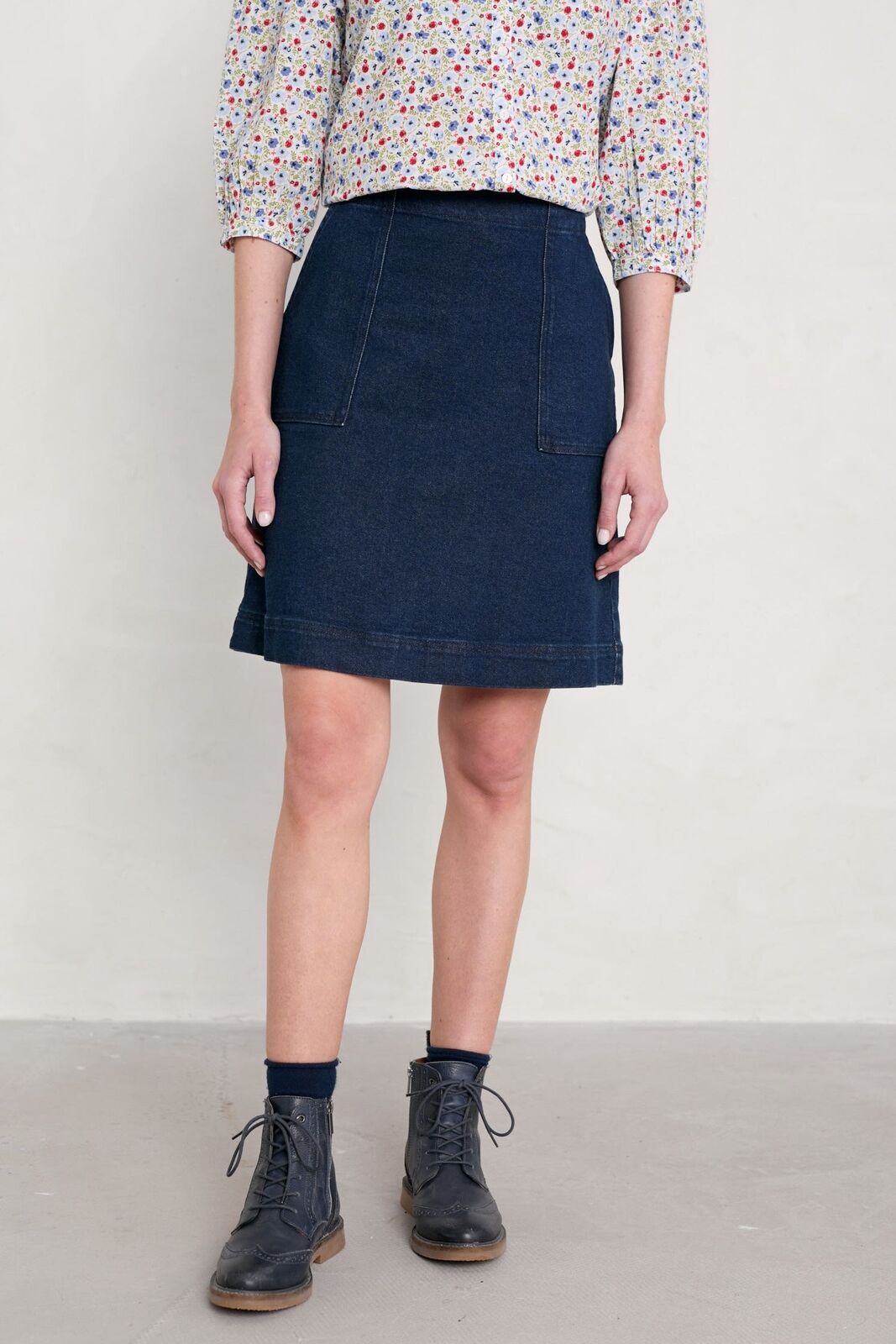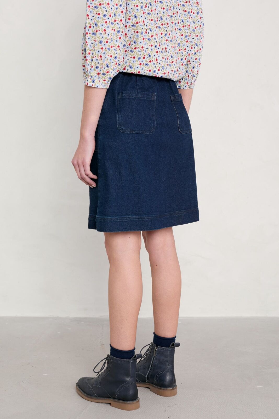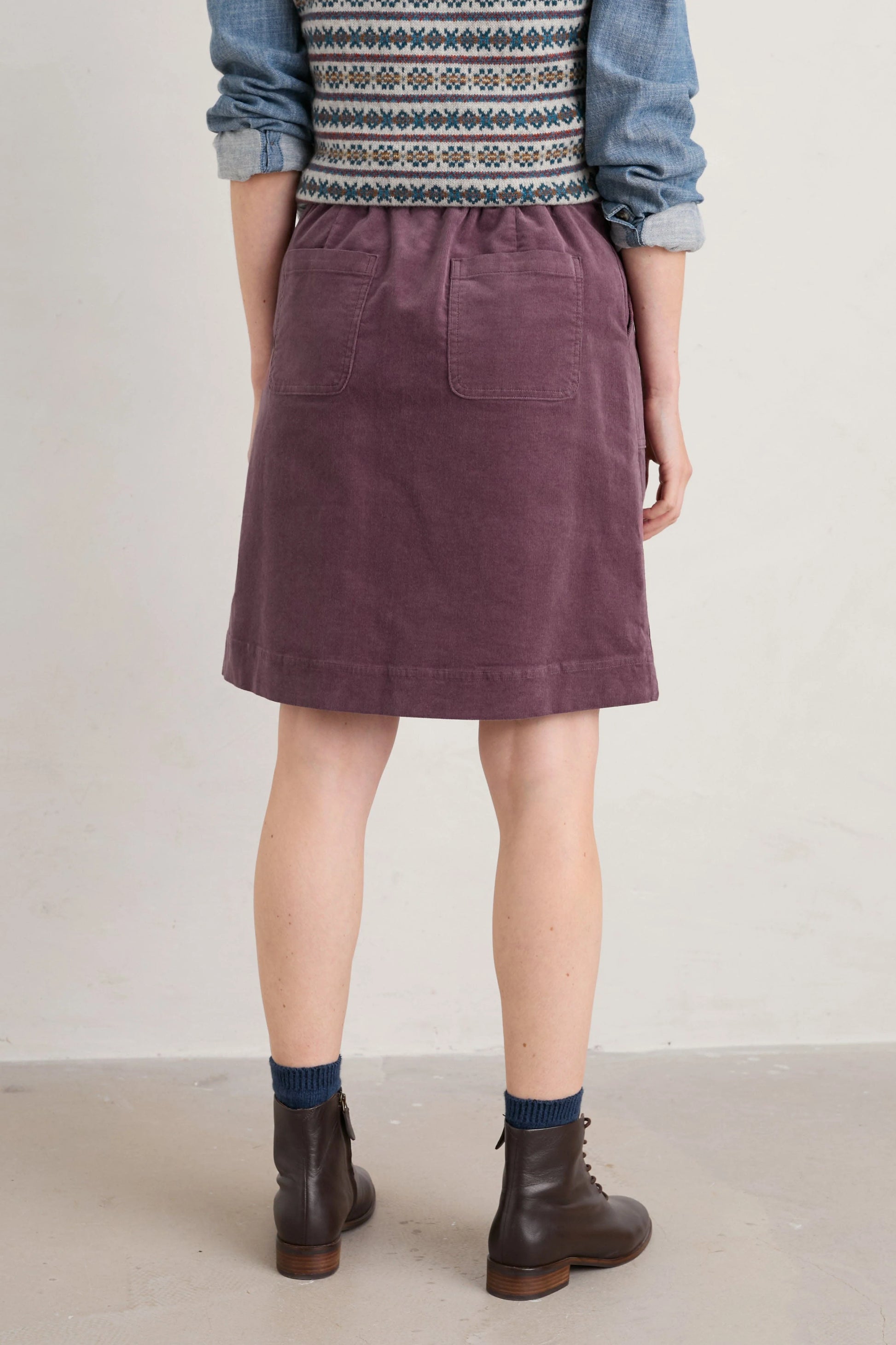 Seasalt May’s Rock Skirt has an invisible side zip and elasticated back waist for an extra comfy fit, and it has generous front patch pockets, with cute back patch pockets and a decorative button at the waist. The A-line shape finishes just above the knee. Lovely with knee length boots and a snug jumper.