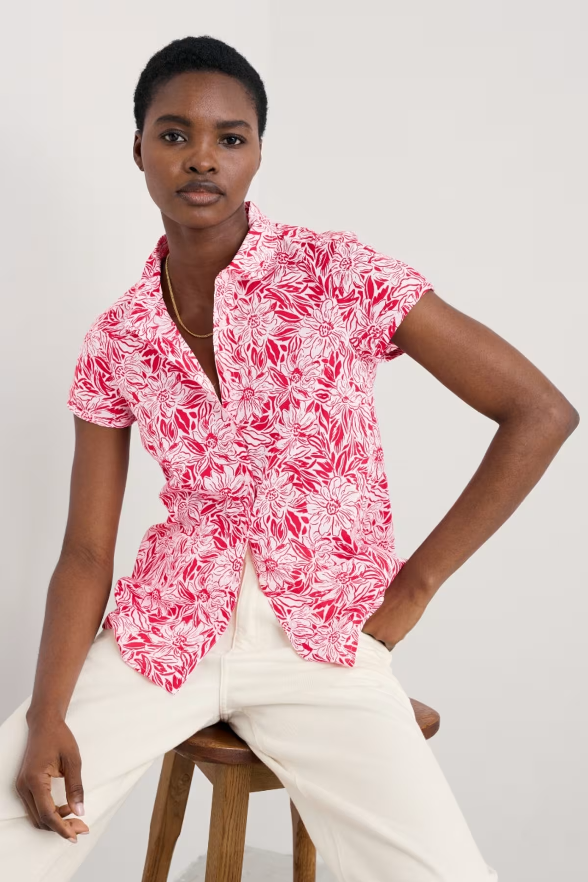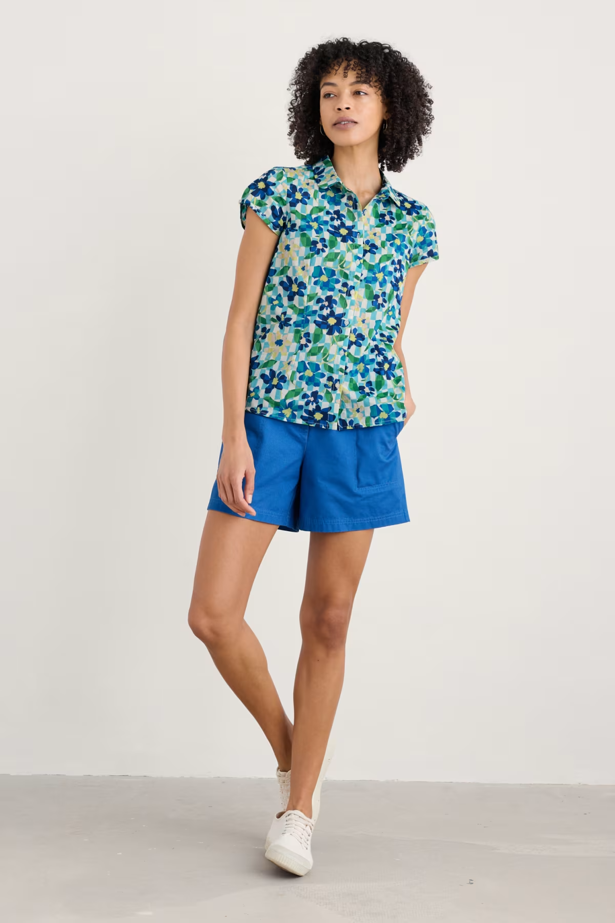 Seasalt Rushmaker Shirt is a more structured way to wear our prints. This semi-fitted style is made from airy cotton voile, with a rounded collar and cap sleeves with sweet keyhole details. We love it with crops or loose linen trousers and flat leather sandals.