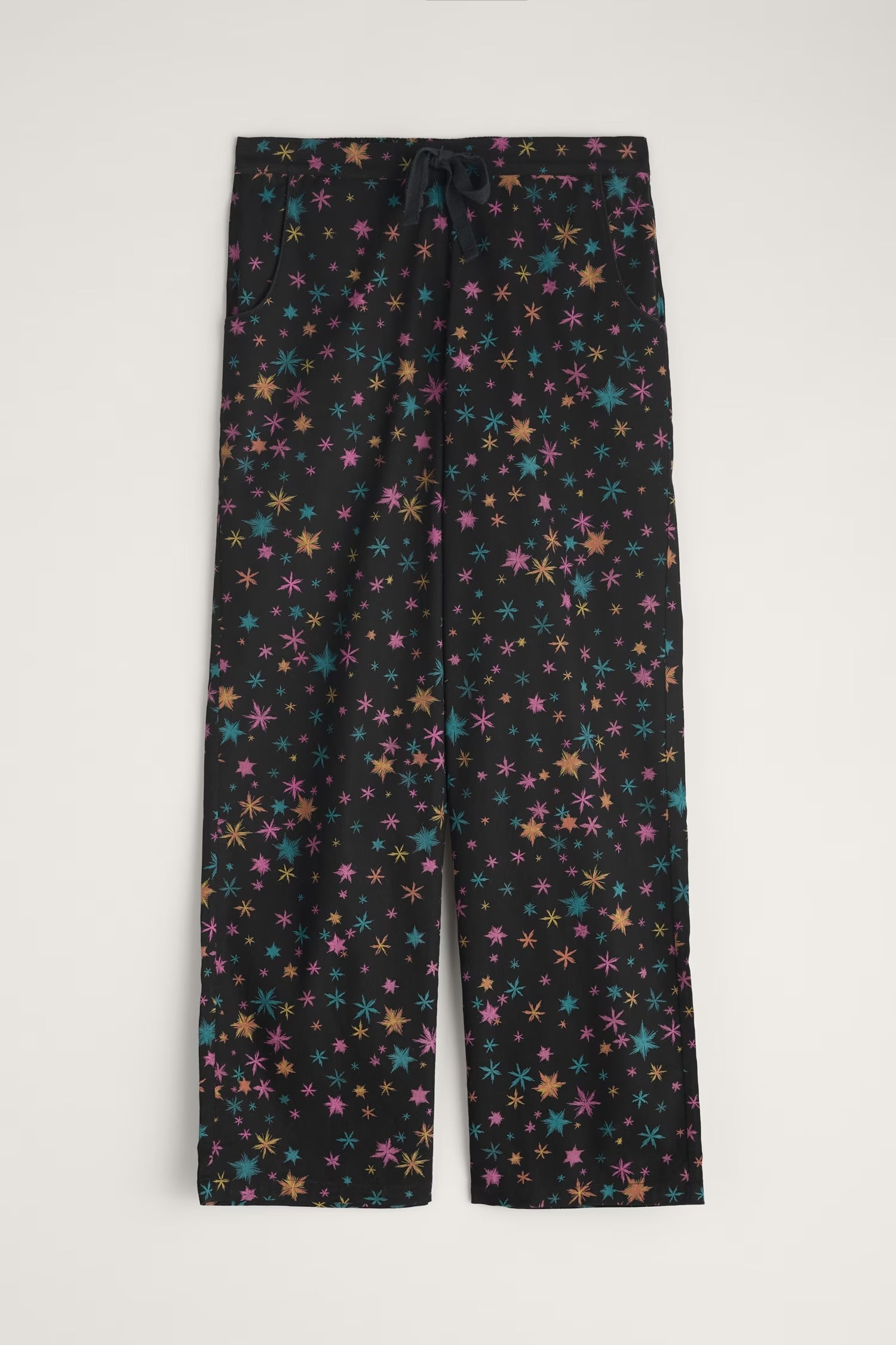 The classic shirt has a patch pocket and the wide-leg trouser has a comfortable waistband with a drawstring front and elasticated back. Our prints are inspired by winter woodland walks, in rich festive colours which make them the perfect gift for someone special.