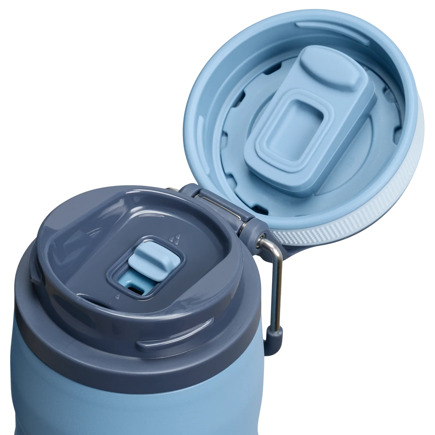 FlowSteady™ technology regulates drink flow for controlled sipping, whilst the integrated carabiner hook secures the bottle to your bag or pack. The snap-lock design ensures the lid stays firmly in place during transport. Available in striking Indigo with premium accents, this compact bottle combines practical functionality with refined aesthetics for those who demand both performance and style.