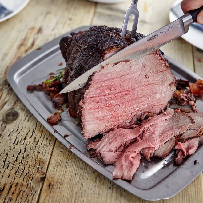 - Spikes hold your roast in place while you carve.