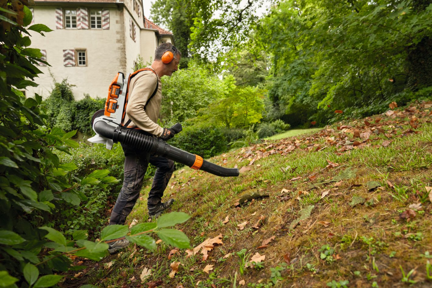 The ADA 1000 is designed primarily to be used with the BGA 300 leaf blower to reduce the weight of the machine when working over long periods. When using the BGA 300 with the recommended AR 3000 L battery, it weighs 16.9 kg. When paired with the ADA 1000 plus 2x AP 500 S batteries, the weight of the leaf blower is reduced to 13.3 kg. This makes working over long periods much more comfortable as you are carrying less weight on your back. For further weight reduction, it can be used with just one battery as opposed to two – although this will lower the working time of the machine.