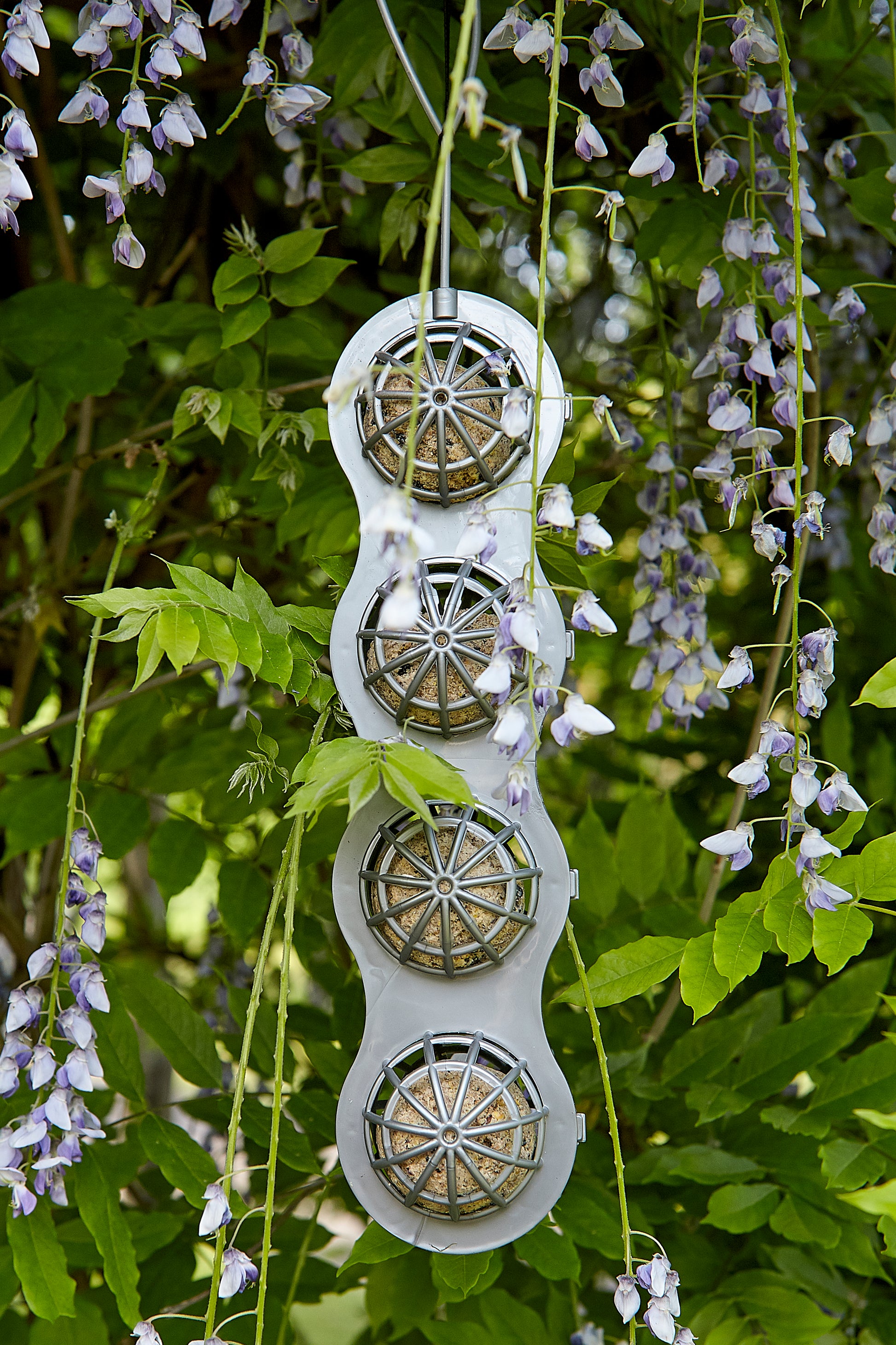 A practical feeder complete with high energy fat balls & can be re-filled.