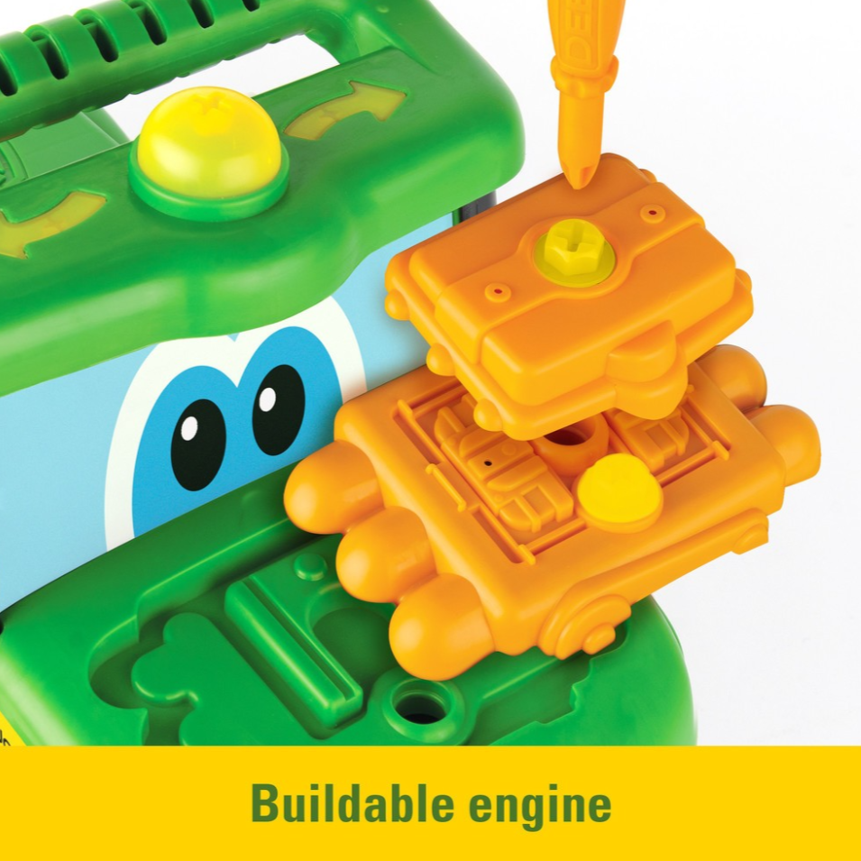 - Toddler ride on, kid-sized tractor with lights, sounds and a buildable engine for imaginative play.