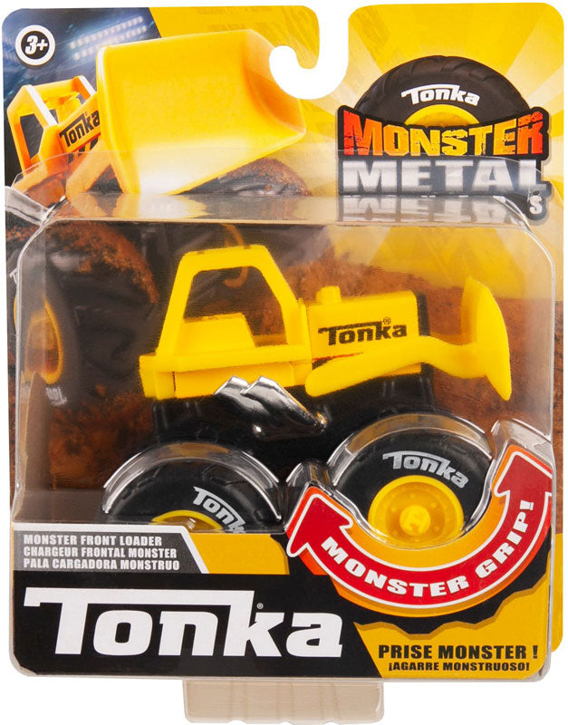 Bring hustle and bustle to your little one's playtime with the Tonka Monster Metal Movers Front Loader. Built Tonka Tough for the toughest outdoor and indoor playtime, this 3" tall, 1:64 scale truck features a movable blade and super grip tires for easy maneuvering. Boasting bright colours and attention to detail, your child can put their imagination to work and bring life to construction sites. Rekindling a classic favourite for over 70 years, this monster vehicle is safe and fun for kids ages 3 and up.