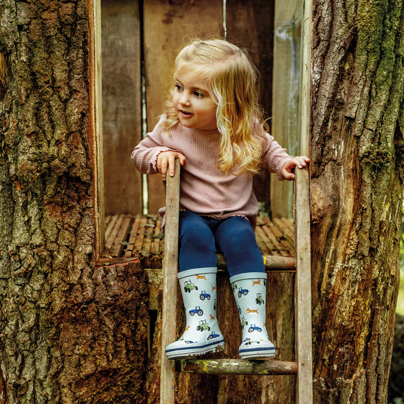 Run around with Midge the dog on your wellies, along with Tractor Ted and a blue tractor. The pale blue colour with dark blue detailing is the perfect choice for any child. Made from a hardwearing premium rubber that is both soft and comfortable. A tab at the back helps little ones pull them on and the chunky tread sole is great at gripping.