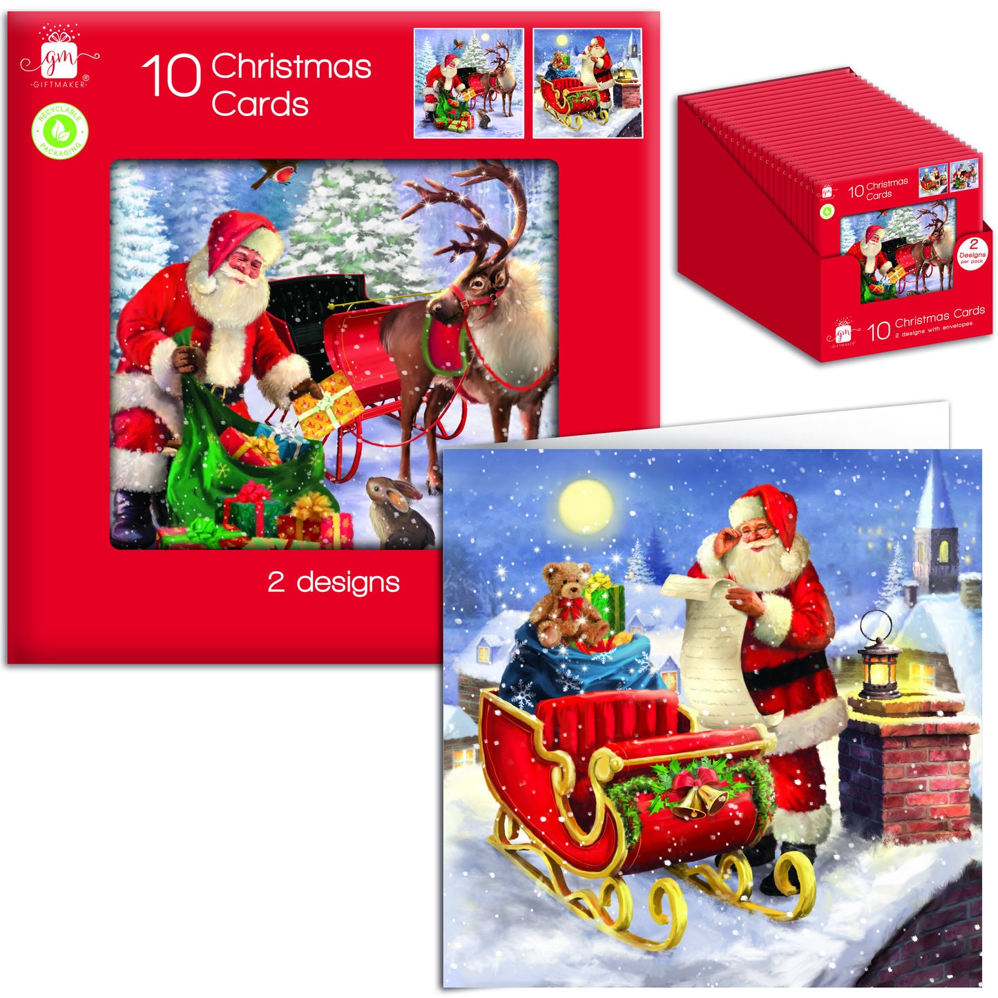 Each pack contains 10 cards featuring two unique traditional Santa illustrations. Perfect for spreading festive cheer, these cards are a great addition to your holiday traditions.