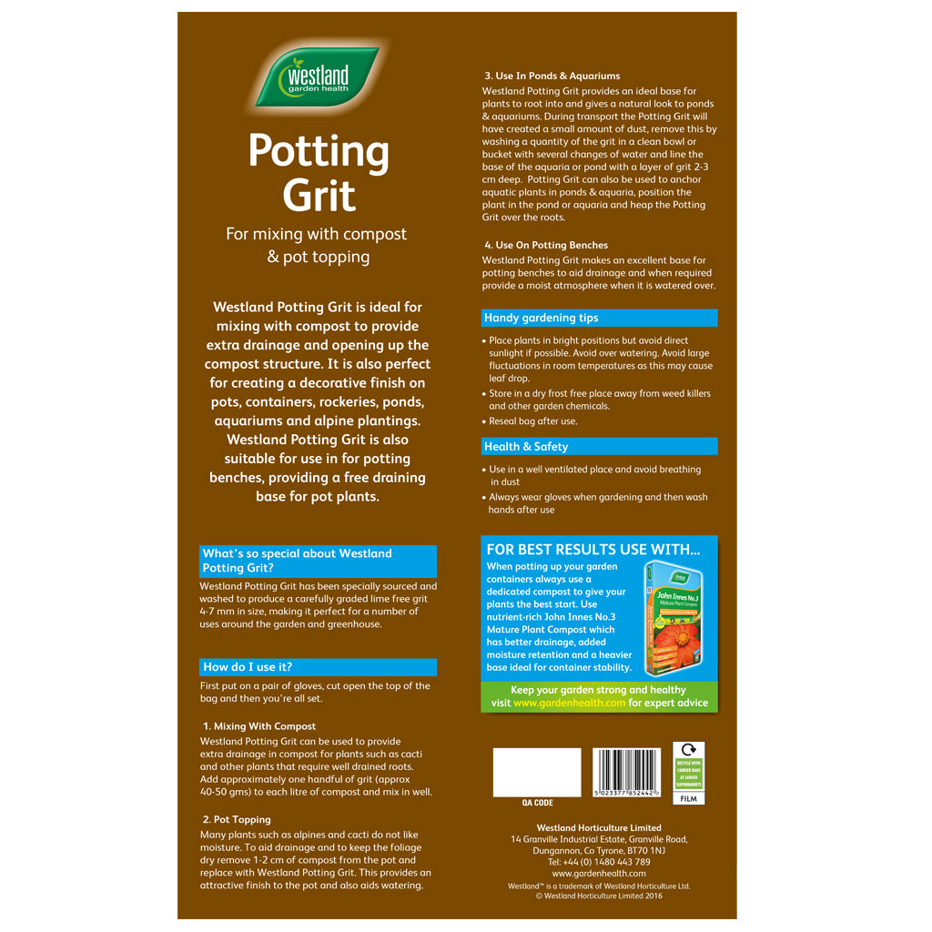 Westland Potting Grit is ideal for mixing with compost to provide extra drainage & open up the compost structure.
