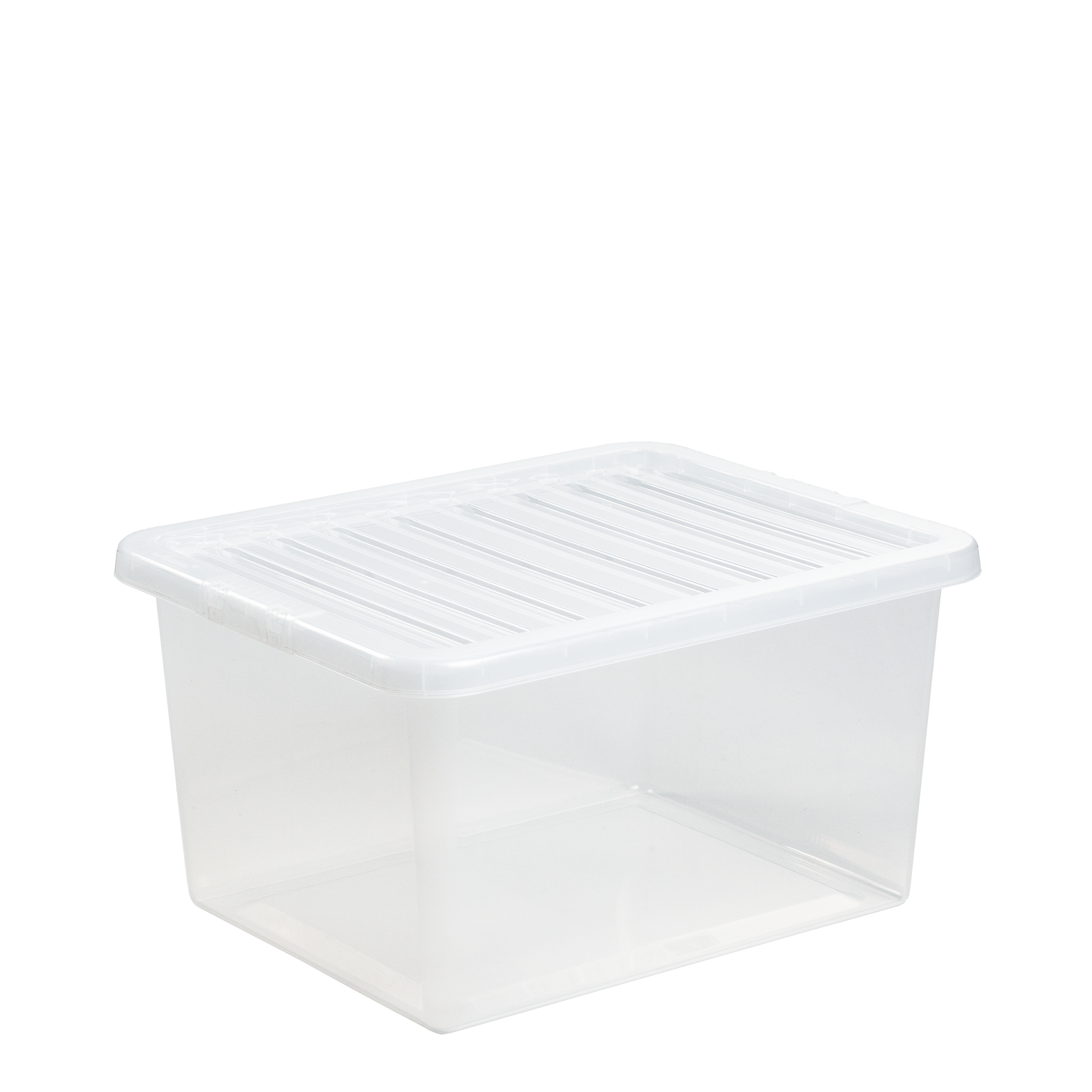 37-litre storage box with click on lid. Versatile storage box suitable for all around the home and workplace. Clear to easily view contents.