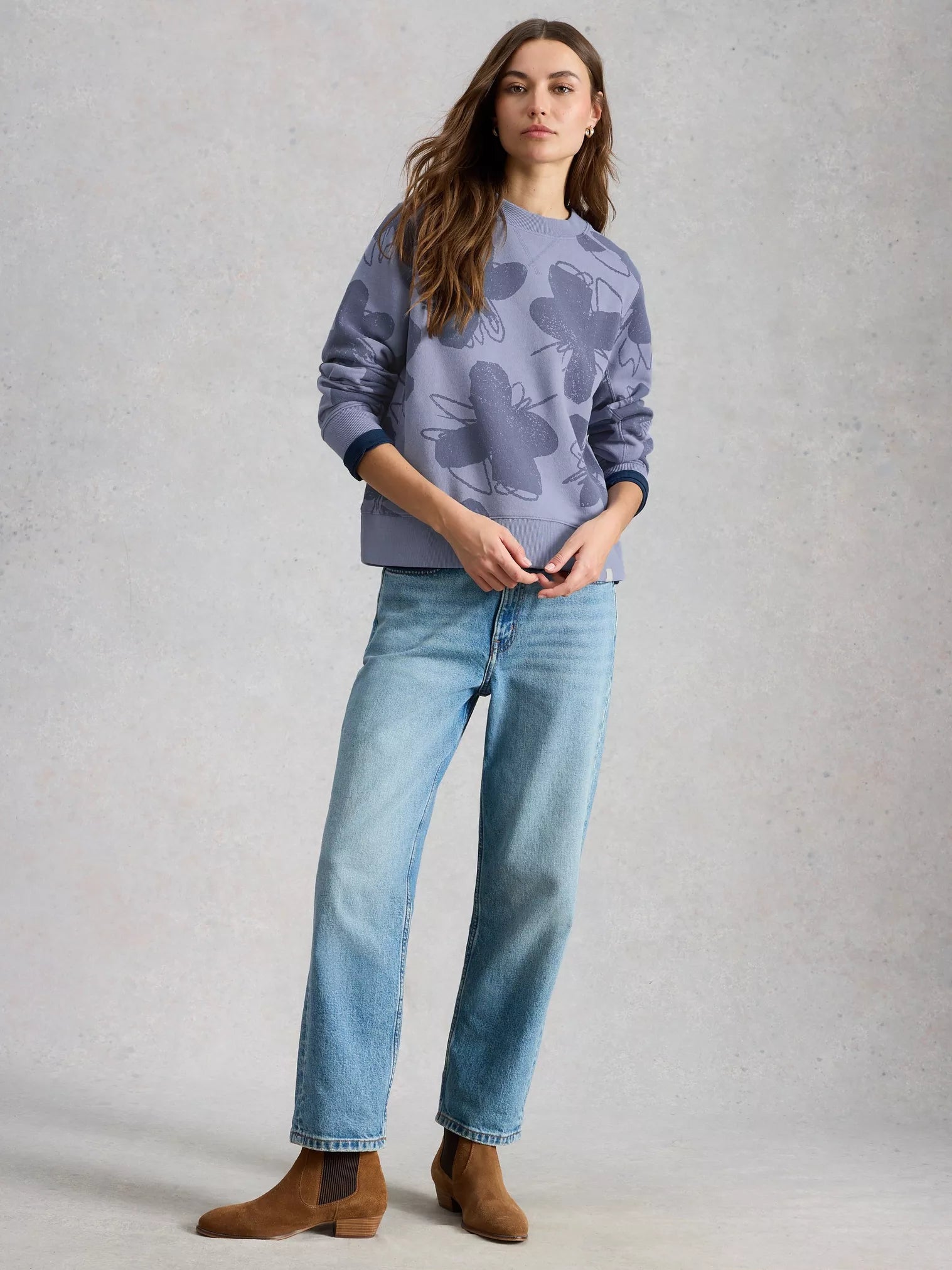 This White Stuff Daydreamer Printed Sweater is crafted from 100% organic cotton, keeping things soft and sustainable. The all-over floral print brings a touch of nature-inspired style, while ribbed hems and cuffs give it that polished finish. Crew neck, long sleeves, regular fit, everything you need for effortless everyday wear. Machine washable for easy care.