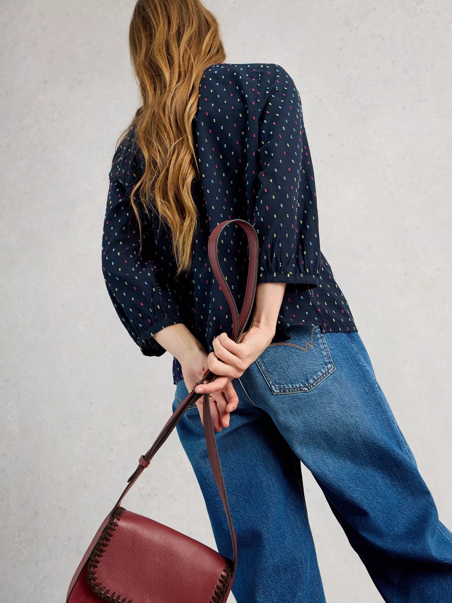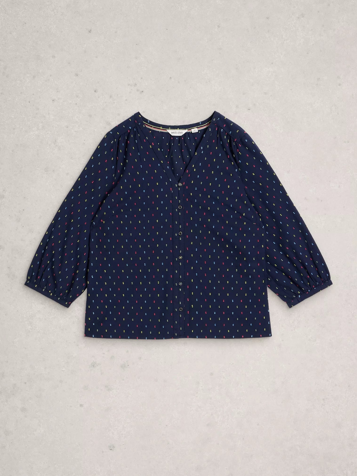 Its flattering V-neckline and gently voluminous sleeves create a refined silhouette, while the pure organic cotton fabric delivers a soft, breathable wear. Crafted from 100% natural fibres, this versatile piece transitions effortlessly from casual to polished occasions. A wardrobe essential that prioritises both style and sustainable choice.