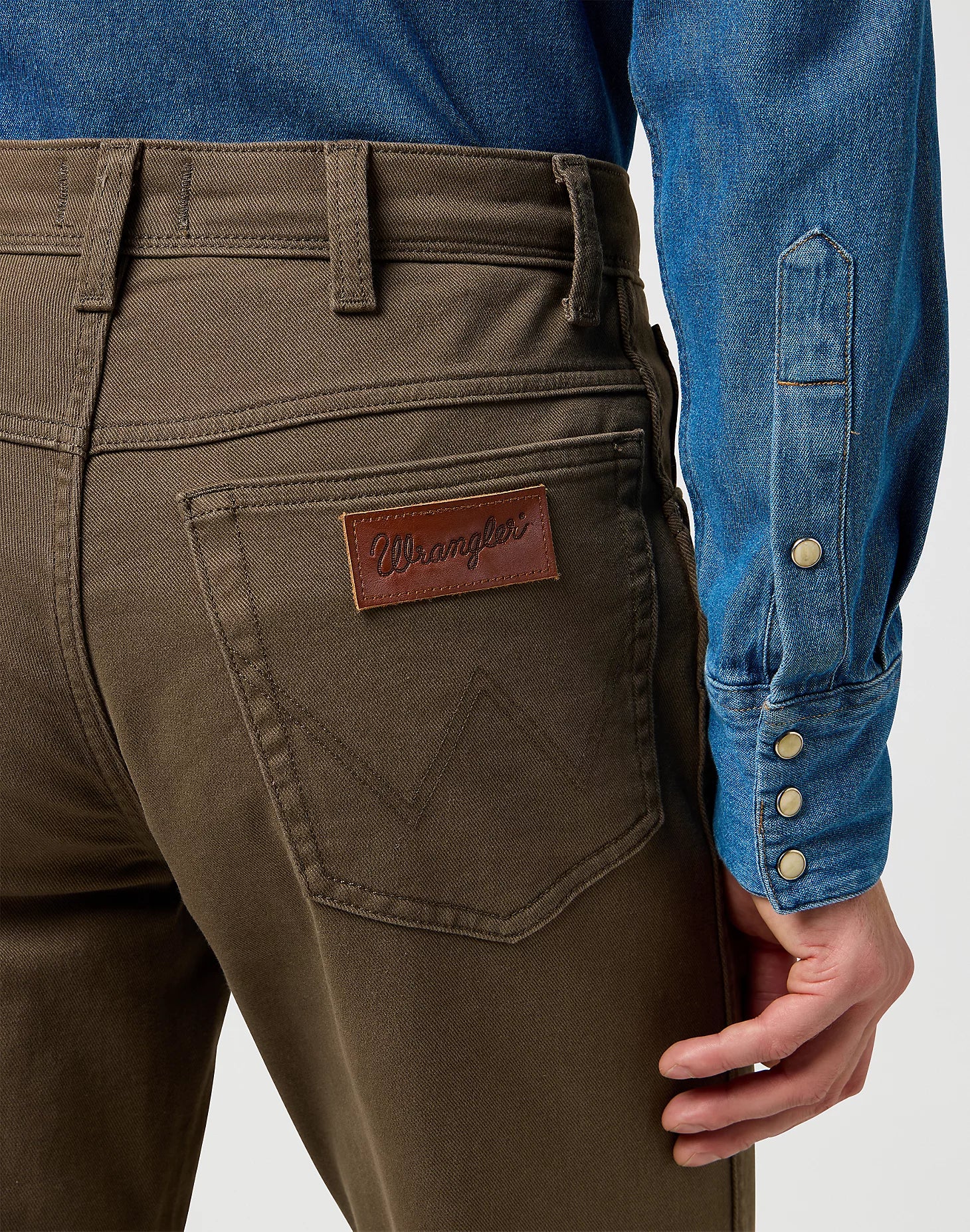 Featuring a classic 5-pocket design inspired by Wrangler's iconic Texas denim, these trousers offer a clean, straight-leg fit with a mid-rise that sits naturally at the waist. Details like seven belt loops, signature 'W' stitching, and a brown Wrangler leather patch on the back pocket emphasise durability and authentic cowboy heritage. Perfectly suited for both work and weekend wear, they deliver a versatile, sleek silhouette that adapts effortlessly across occasions.
