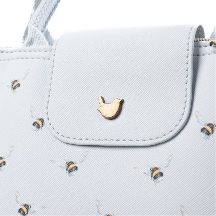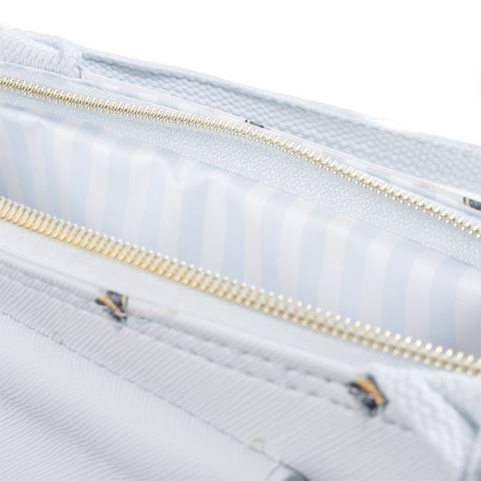Pack a punch for your lunch, with a fabulous, insulated lunch bag adorned with gorgeous bee illustrations. The perfect size for one, each bag has a patterned exterior, complementary striped lining on the interior and is finished with antique brass wren detail and zip top fastening. Made from vegan leather, the bag is stylish and practical and neatly fits our small water bottle designs inside as well as a small lunch box.