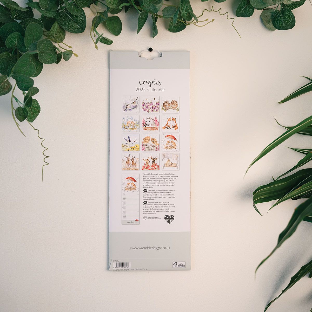 Featuring twelve charming illustrations of animals in pairs, this couple's calendar is perfect for keeping track of important dates and appointments. Printed on a textured board, it measures 147mm x 420mm for easy display and storage.